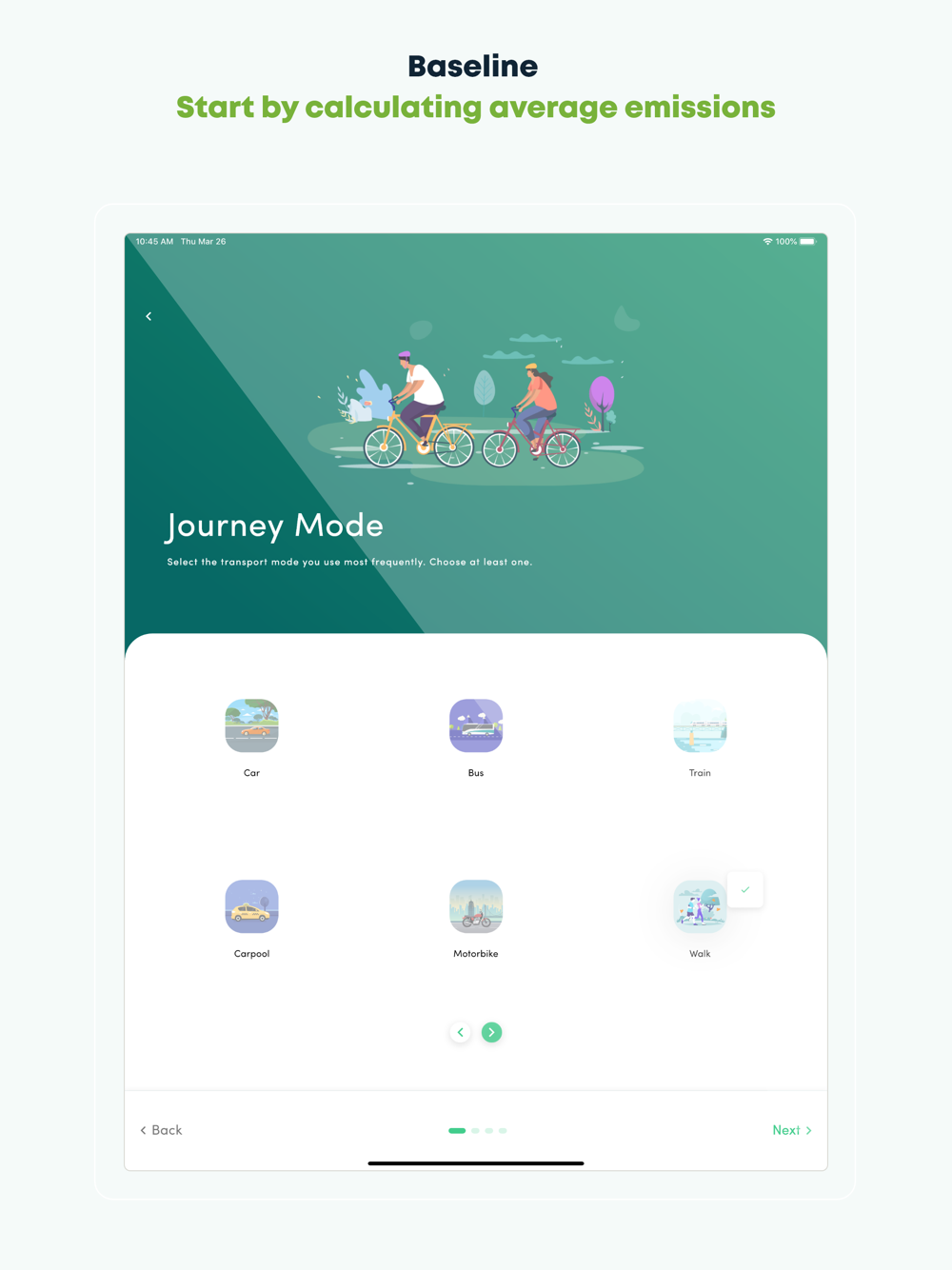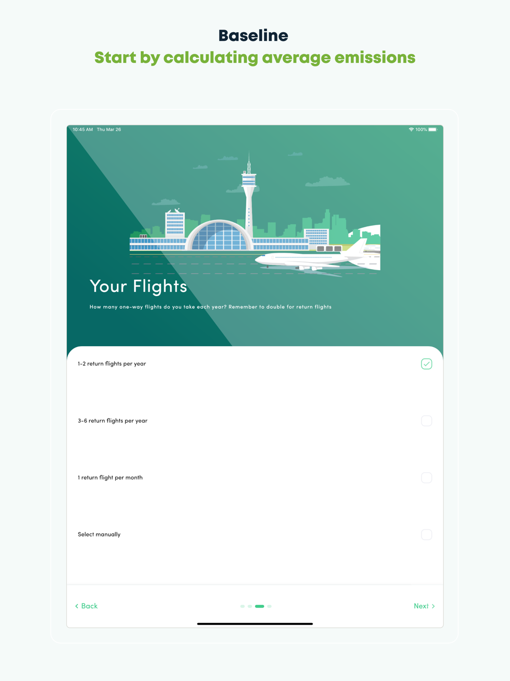 - Download and signup by answer a few questions about your lifestyle to establish your baseline carbon footprint