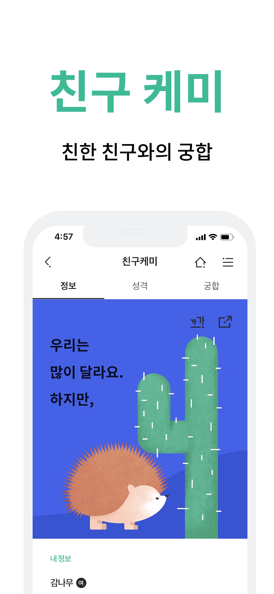 연인, 가족, 친구, 동료의 궁합을 제공합니다.
