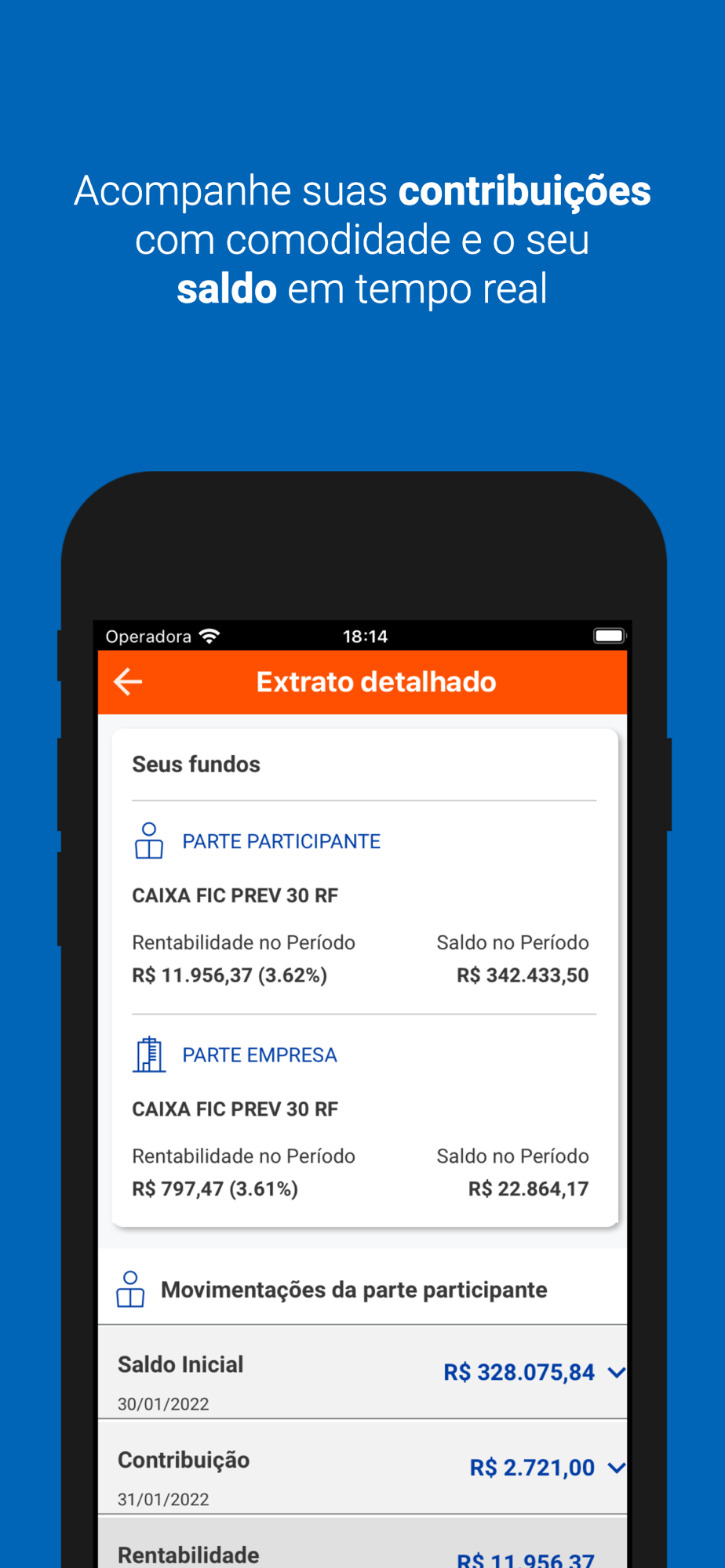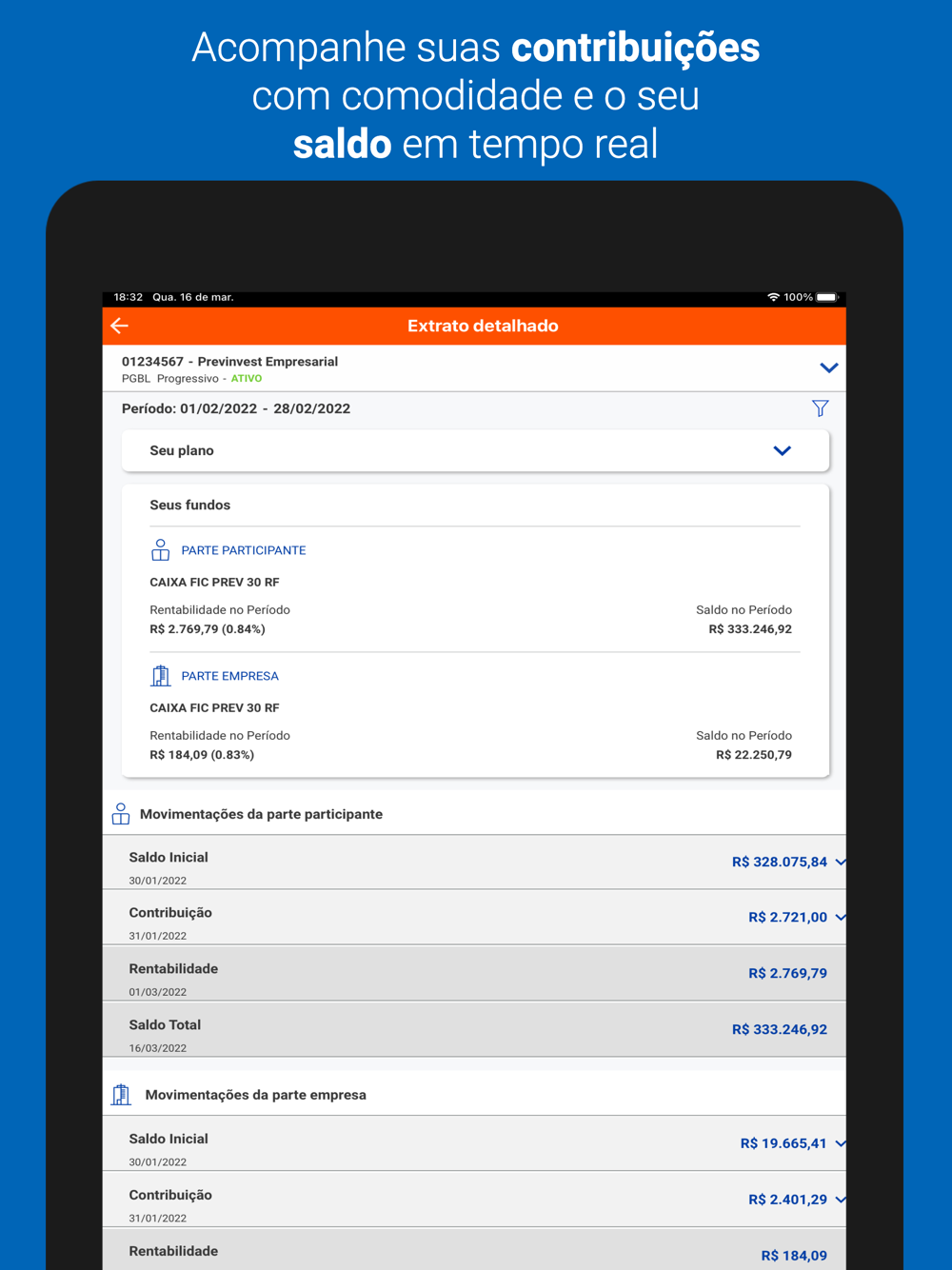 Aplicativo para gestão e acompanhamento dos planos de previdência da Caixa Vida e Previdência.