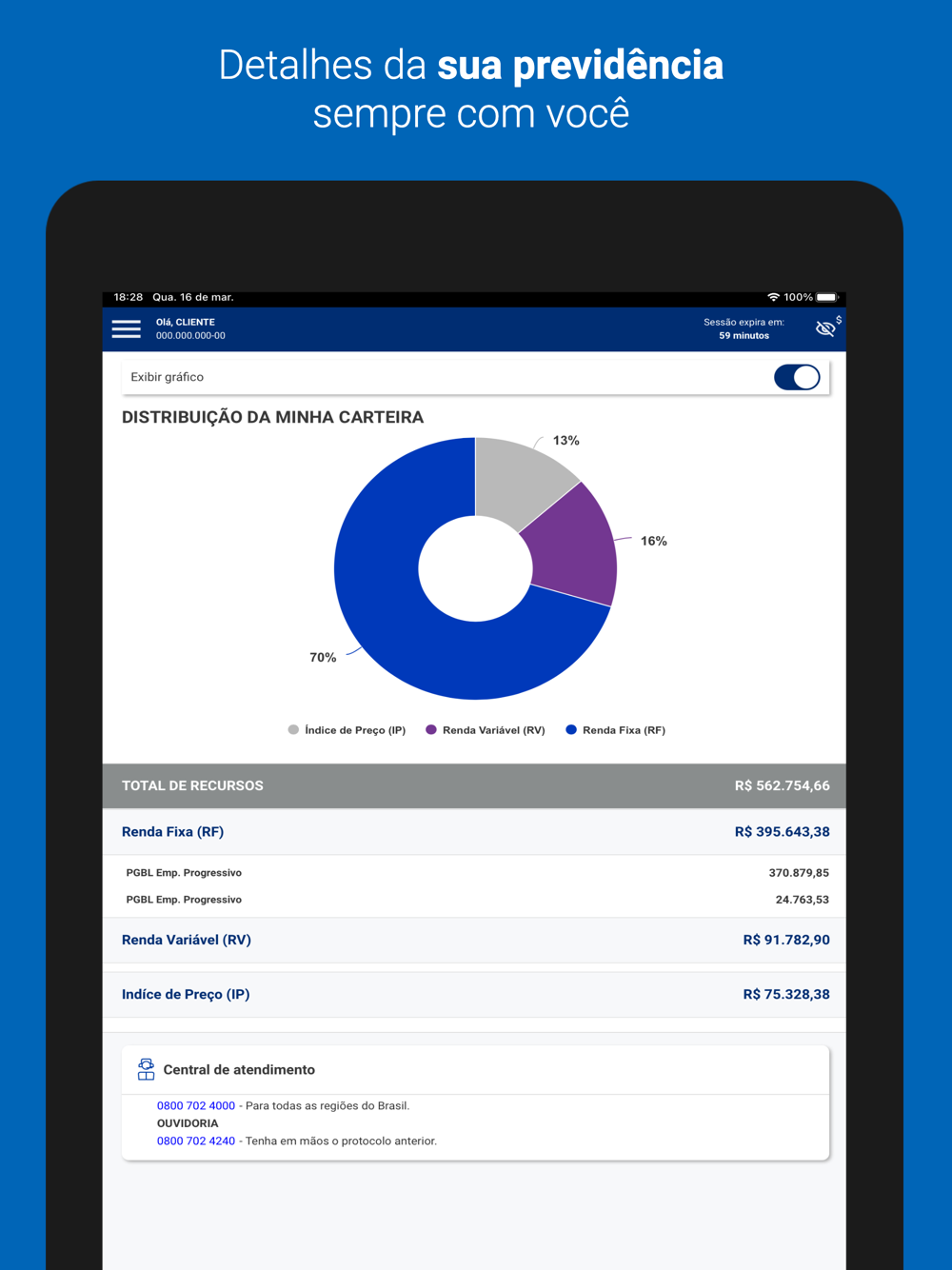 Verifique a composição da sua Carteira, seus Certificados, consulte Extratos, faça Aportes, obtenha informe do IR, administre seus Beneficiários, simule Planos e muito mais.