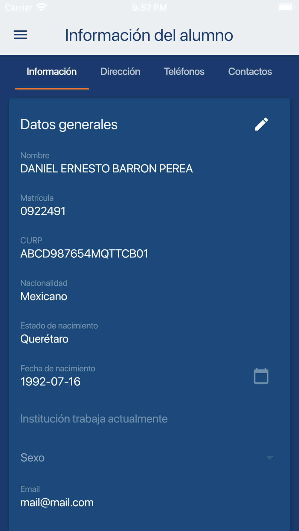Información personal: Consulta y edición de información personal tal como dirección, números de teléfono, contactos.