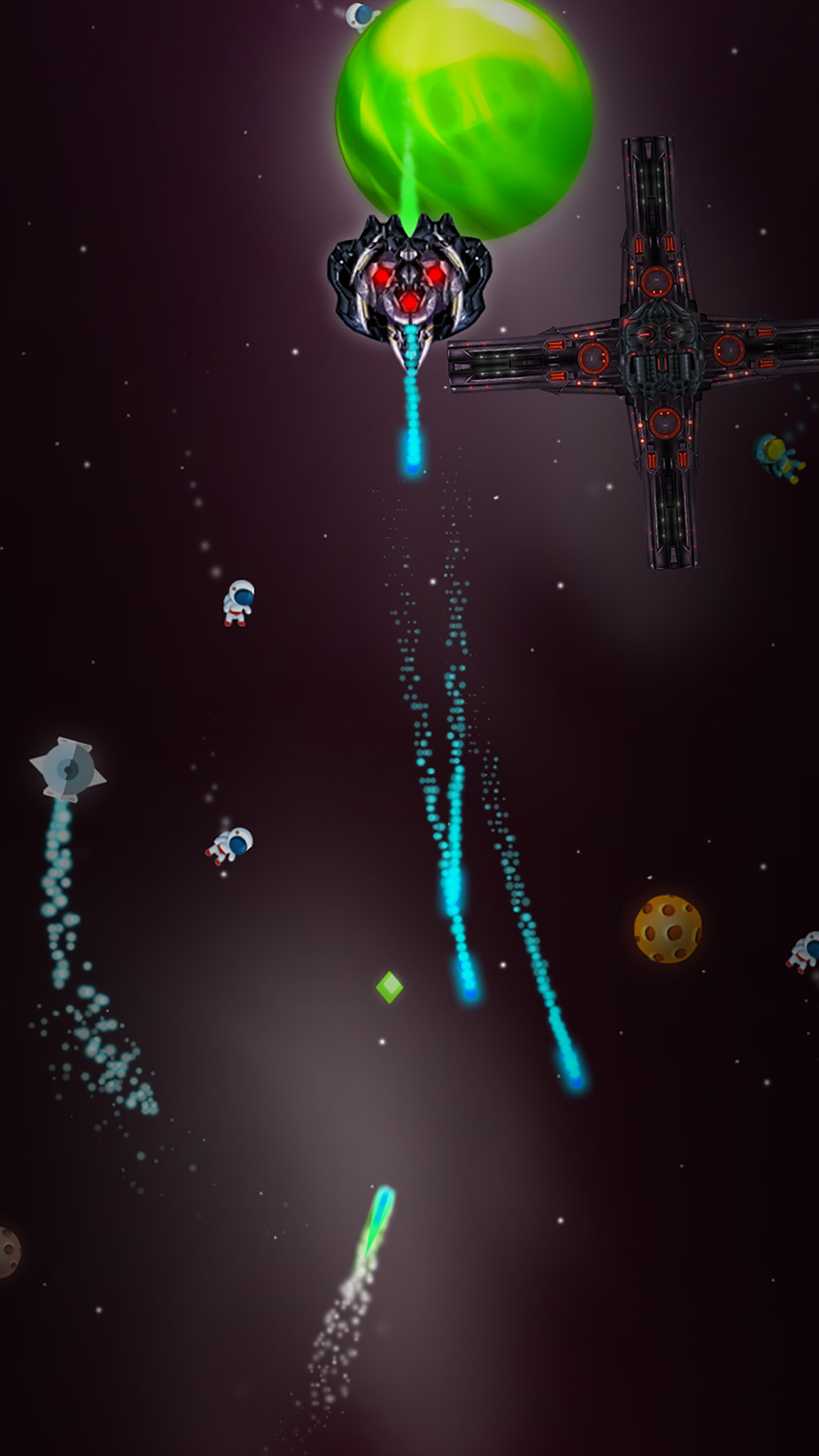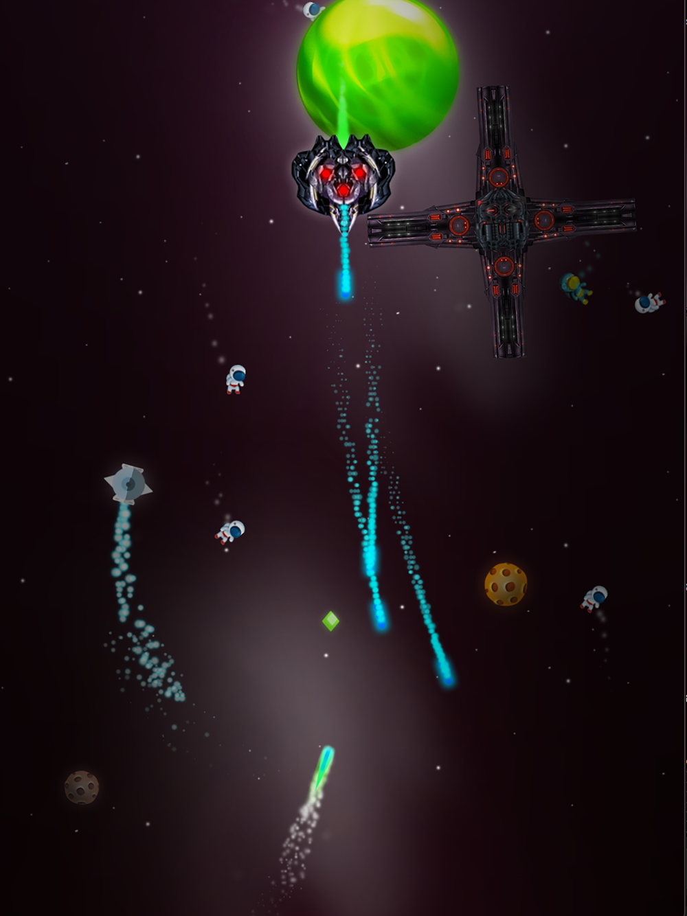 - Use gems to buy better spaceships