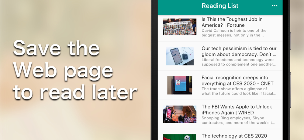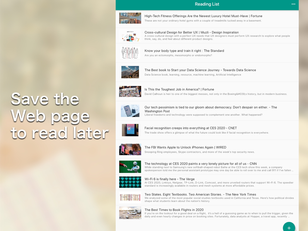 ・ You can add the site to the list by pressing the (+) button or by selecting the "Reading List" app from other app's Share Extension.