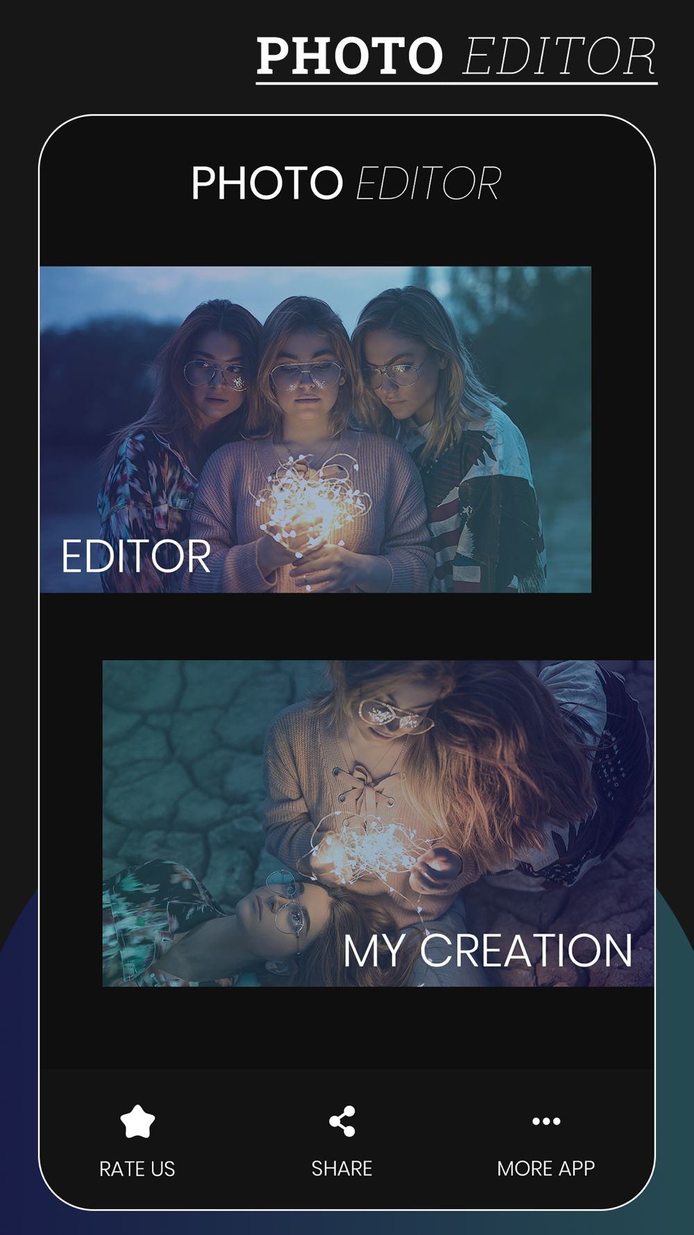 Photograph Editor, Photo Filters, Photo with Text and Stickers and some more.