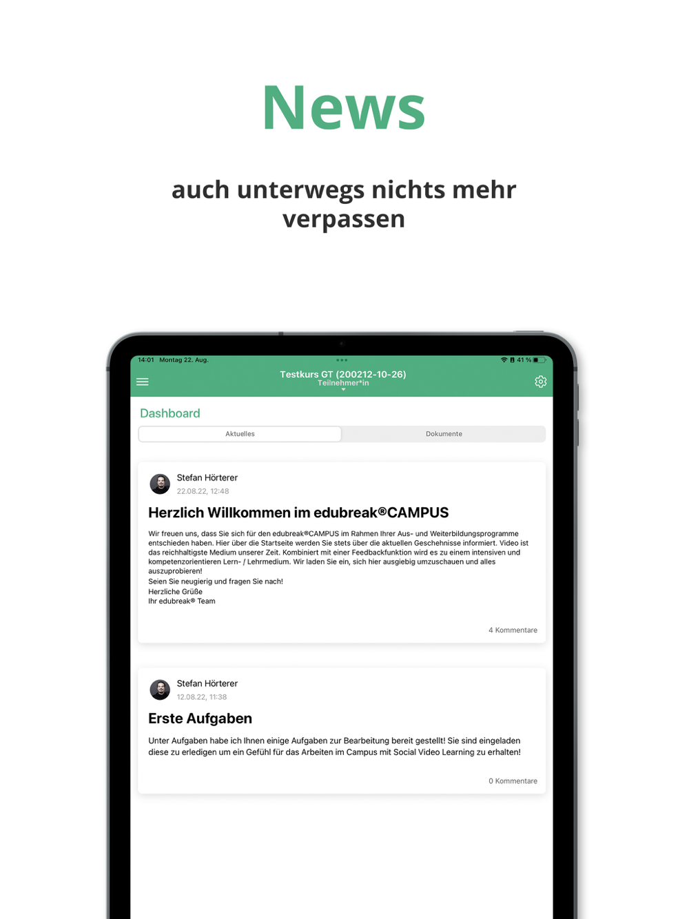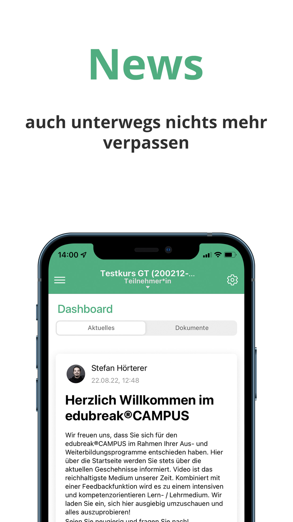 Verpass keine neuen Aktionen in deinen Kursen oder Reaktionen auf deine Beiträge. MIt den Push Benachrichtigungen der edubreak®APP wirst du immer direkt auf deinem Smartphone informiert, wenn es etwas Neues gibt. Auch, wenn du die App geschlossen hast.