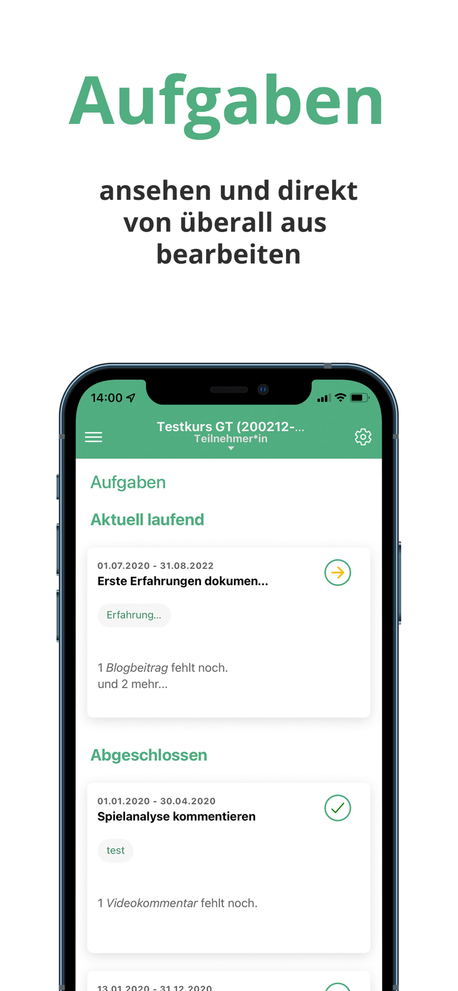 Greife von überall auf deine Aufgaben und Nachrichten zu. Neben den Inhalten der Aufgaben, siehst du hier direkt den Bearbeitungszeitraum und die eingestellte Feedbackmethode. Verfolge deinen Fortschritt und behalte deine offenen Aufgaben immer im Blick.