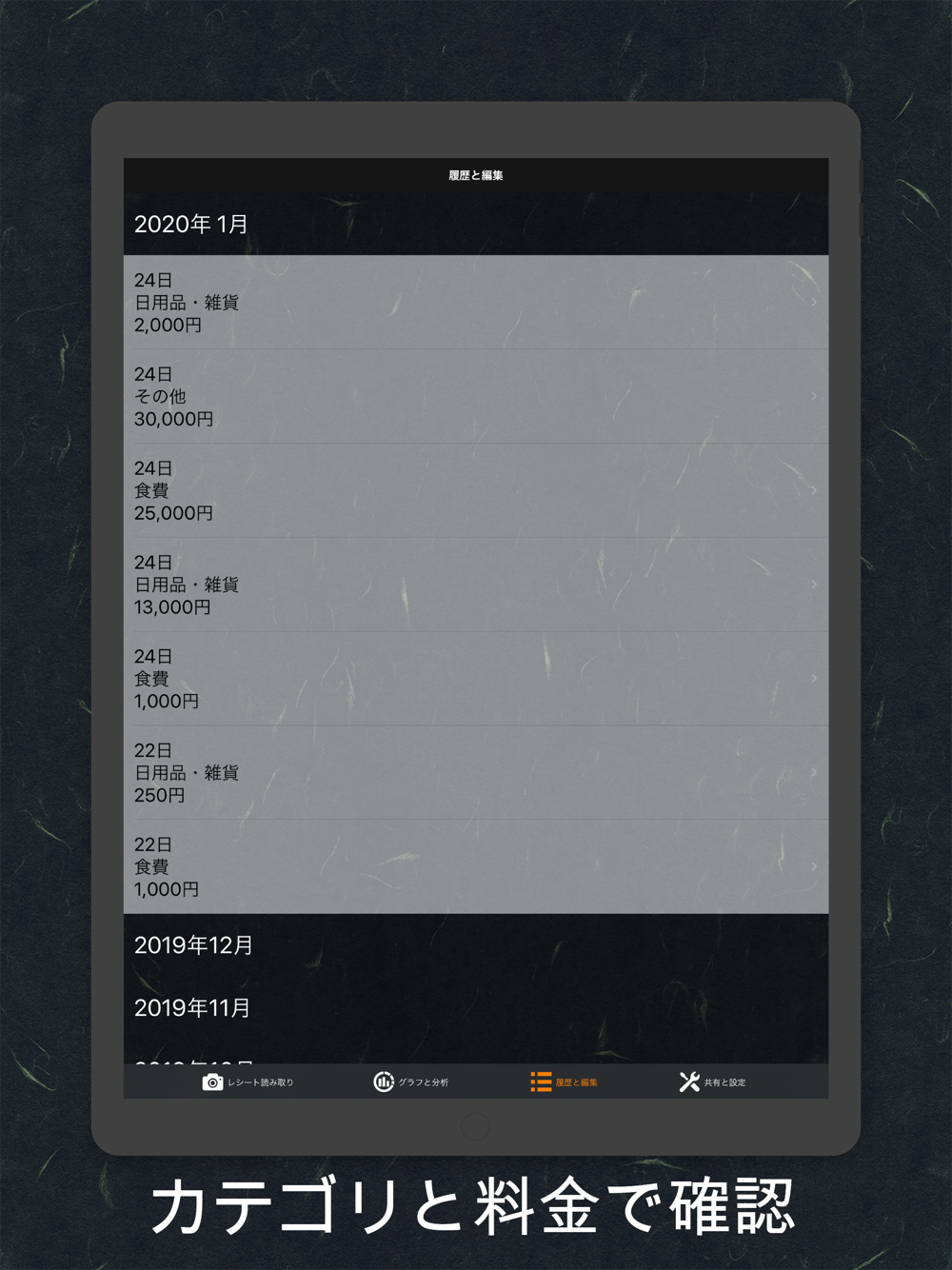 ・食事や雑貨などのジャンルごとに支出を管理して確認したい