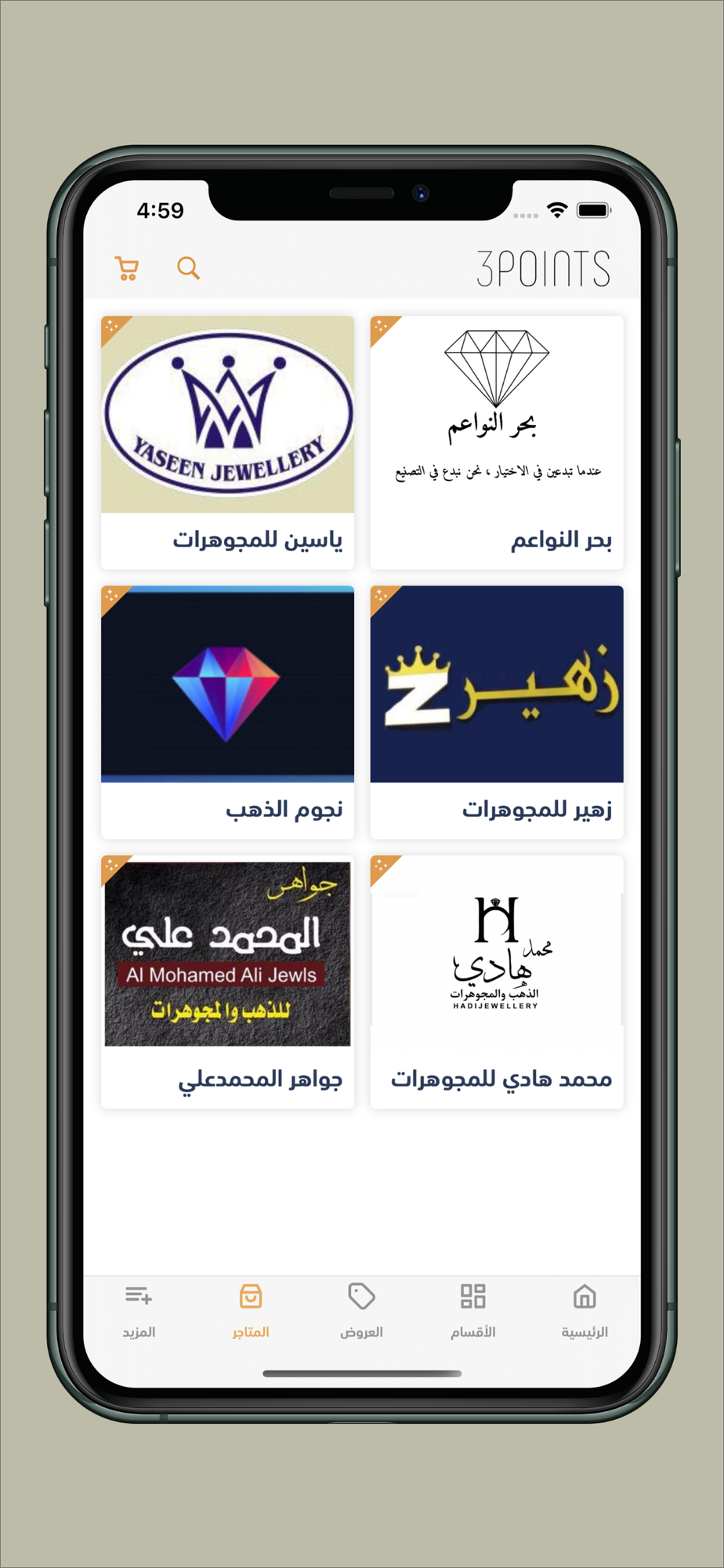 تطبيق 3بوينتس هو اول تطبيق الكتروني يجمع محلات الذهب والمجوهرات في منصه واحده وجميع المحلات لدينا موجوده على ارض الواقع وبأوراق رسميه .