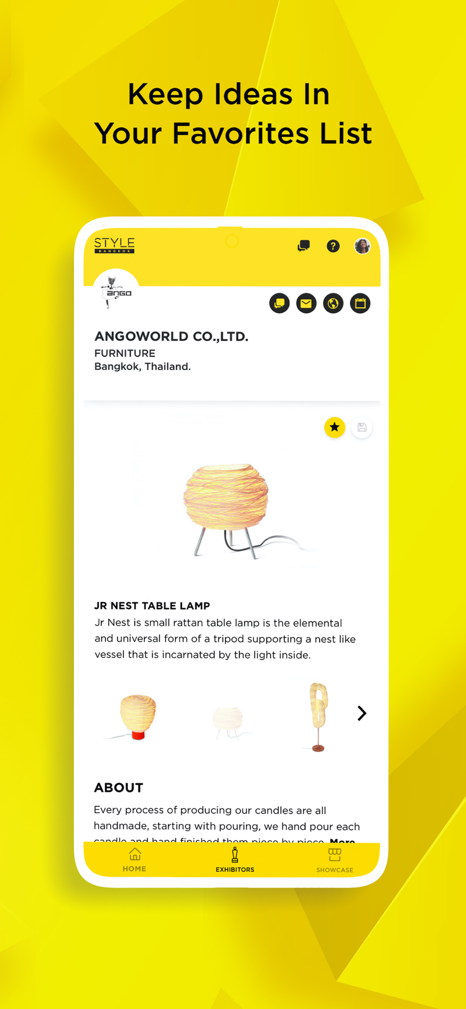An official mobile application STYLE Bangkok, organized by DITP. The perfect mobile solution for visitors/buyers to explore Asia’s premier lifestyle trade event.