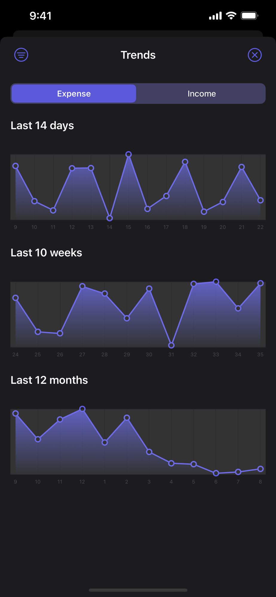 Expenses has been crafted to keep track of your spending effortlessly, with useful features in a simple, intuitive interface. And with iCloud, it’s easy to keep all your expenses in sync across your devices and collaborate with others using sharing.