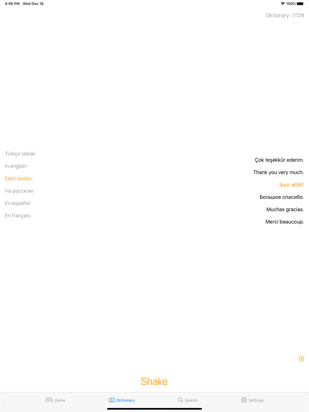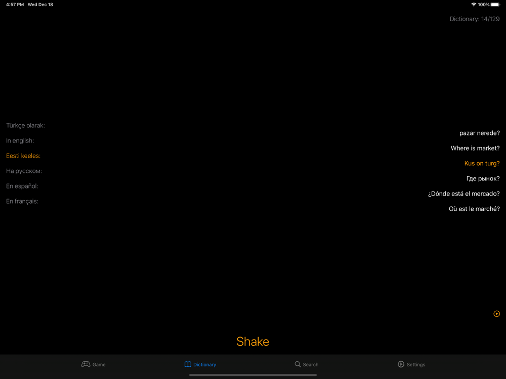 When studying Estonina, you will fill up a vocabulary of English words. Tips are accompanied by duplicated words in English, Estonian, Russian, Turkish, Spanish and French languages.