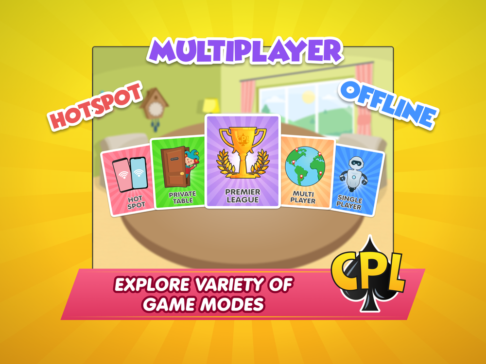 You can play with friends with the hotspot feature. Choose the number of rounds (5, 8, and 12 rounds) or Race to win (20,30, or 50 points)