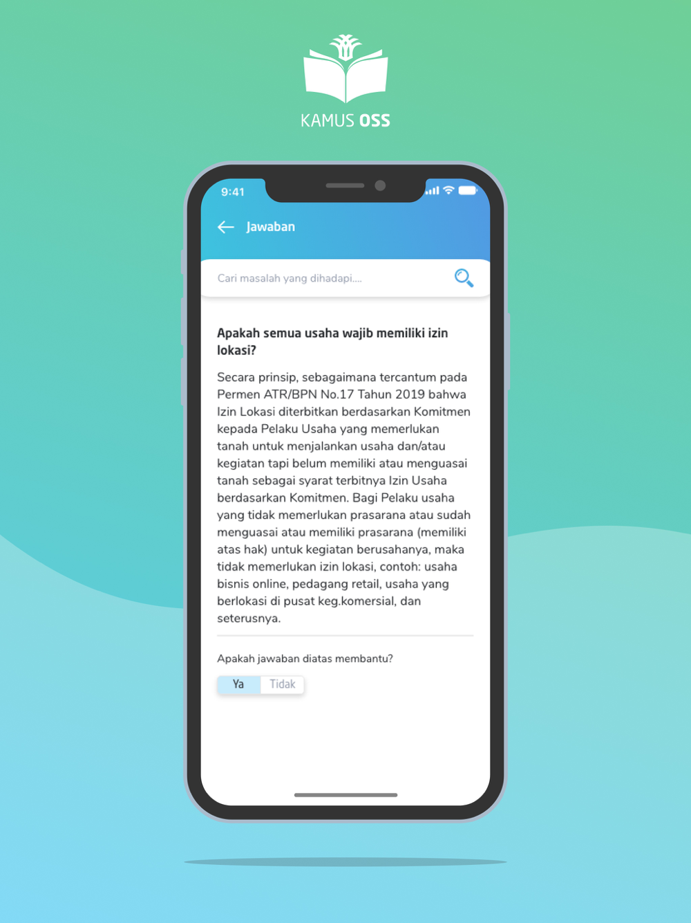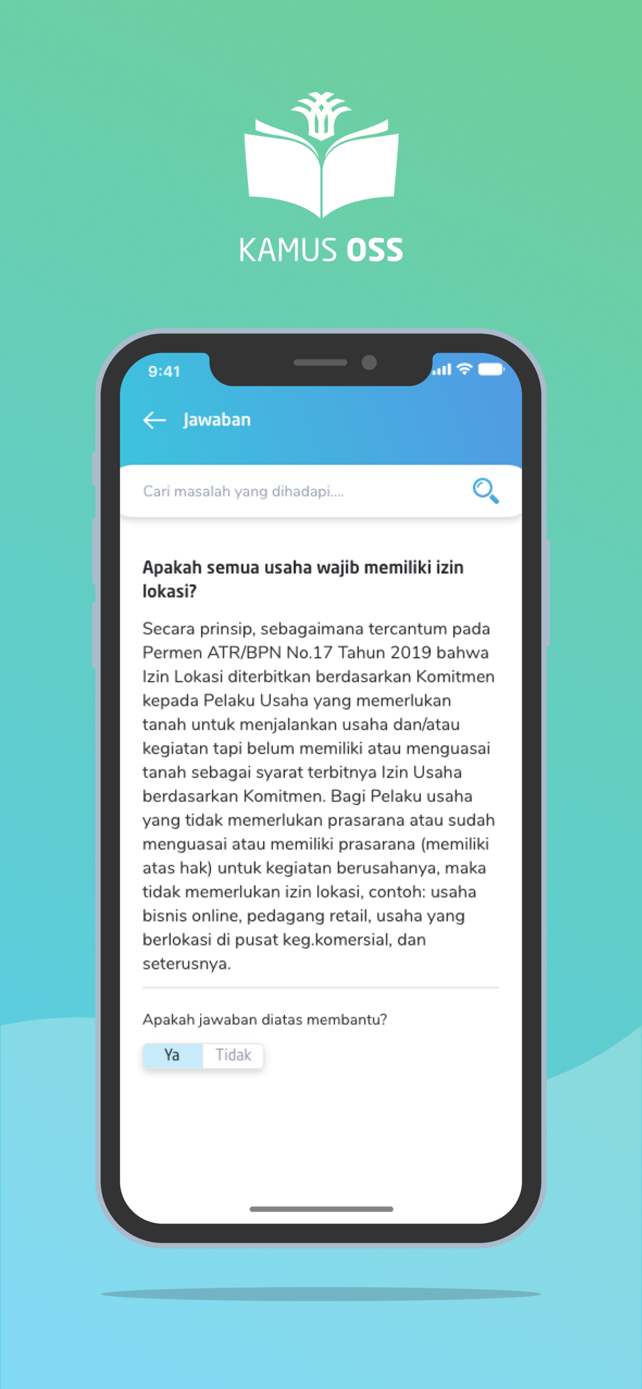 Melalui platform ini, pelaku usaha dan pelaku kuasa usaha dapat mengakses kamus OSS dengan mudah dan mendapatkan informasi seluas-luasnya terkait Sistem OSS dan penanaman modal.
