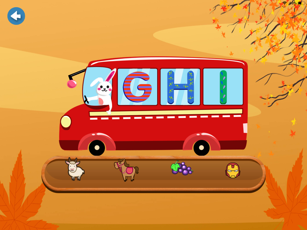 Learn English words with fun. The 26 letters of the way through the level are the 26 levels of a-z, and avoid the frustration of the baby. Various small animal driving buses keep kids interested in playing. The whole level sounds immersive and immersive in the context of beginner English. The game needs two modes, each of which does not exist in isolation, and the baby can strengthen the learning of words through simple word drag interaction.
