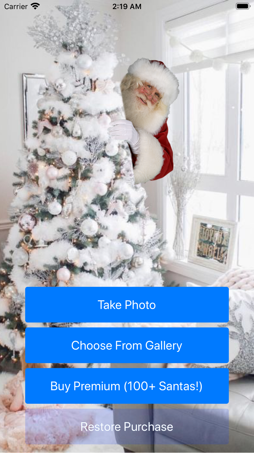 Add Santa Claus to a photo of your living room.