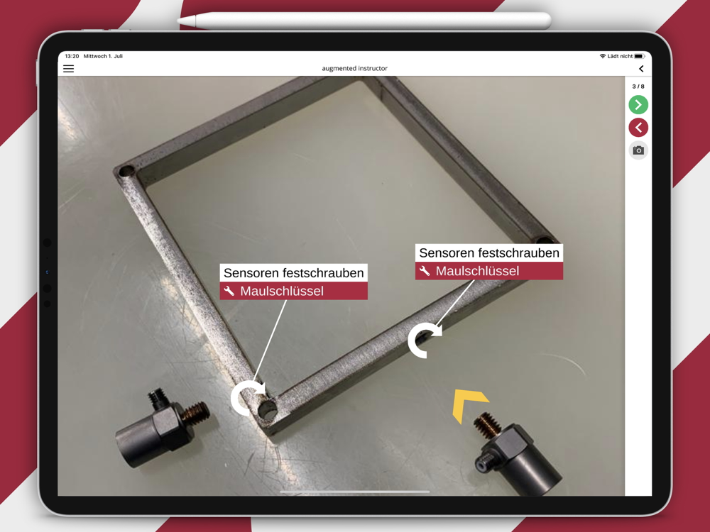 Depending on the authorization, the instructor allows you to record and play back instructions or just play them back. When recording, several work steps can be created per instruction. For each of them, a picture can be recorded, which is then marked to explain a procedure. Additionally, media such as images, videos and photos can be attached.