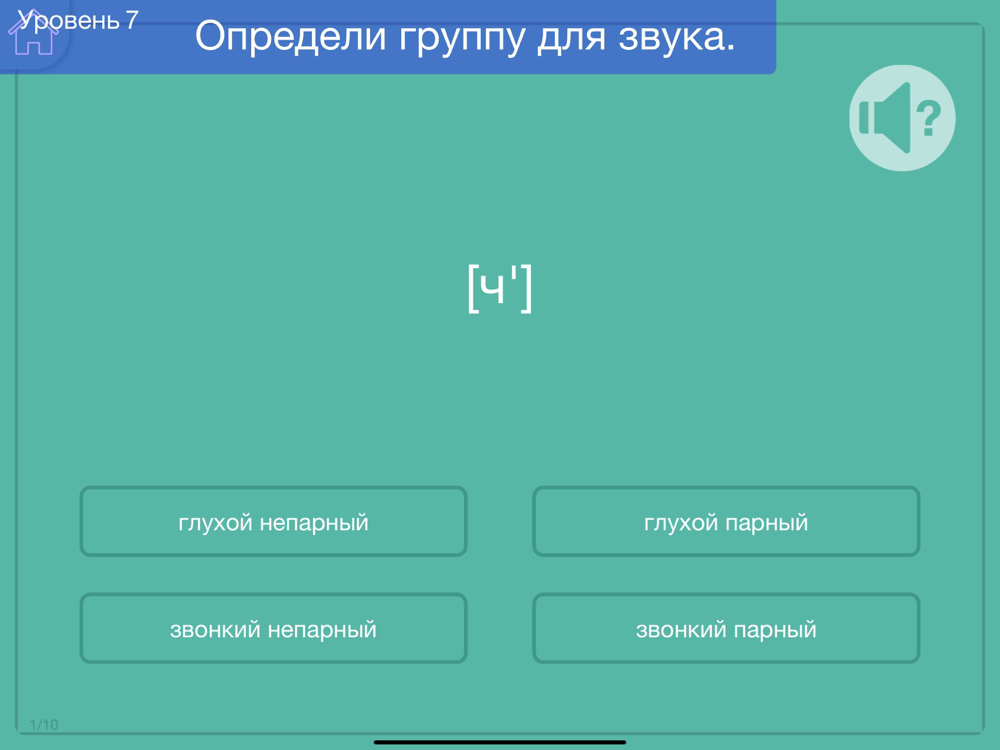 уровень 5 - Определи группу для звука (гласный или согласный).