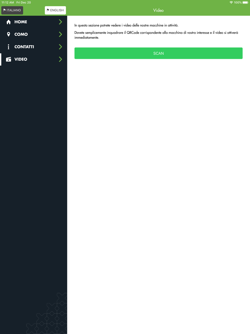 Nel menù può trovare informazioni relative a ETA e la possibilità di interagire con i nostri QRCode.