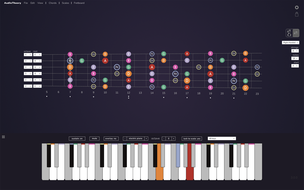 AudioTheory Guitars is the ultimate reference tool for guitar notes and chords. Featuring an interactive keyboard, fretboard and chords, each note reacts across the set of customisable diagrams. For anyone who's ever wished music theory was that little bit more straightforward – this is the software for you.
