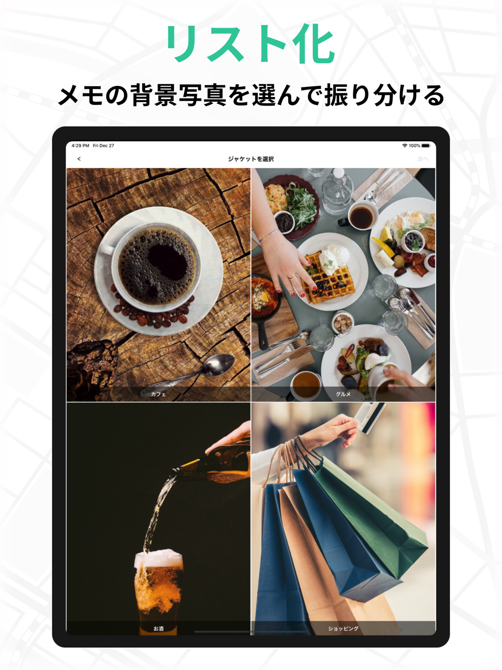 --メモの背景画像を選び、ジャンルを振り分けリスト化。