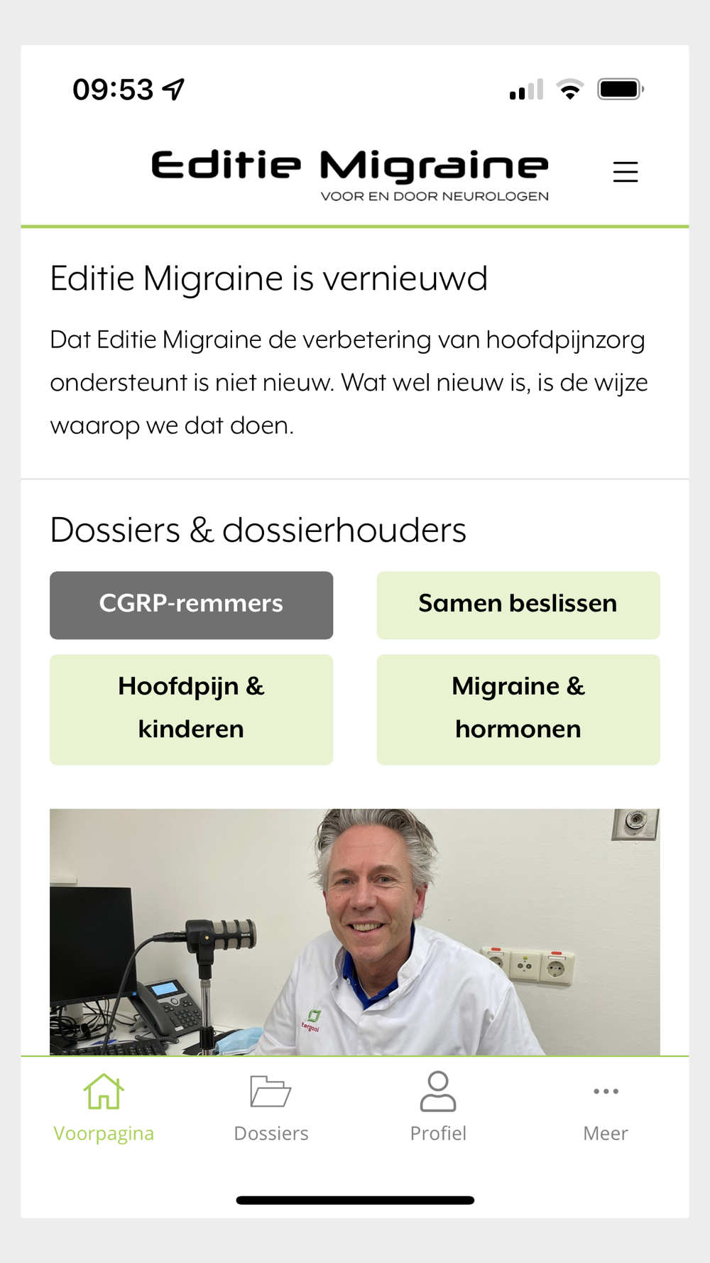 Editie Migraine is bedoeld voor medische professionals met interesse in hoofdpijnzorg. Editie Migraine is geheel toegankelijk voor neurologen en hoofdpijnverpleegkundigen met specialisatie en gedeeltelijk toegankelijk voor verpleegkundigen zonder specialisatie.