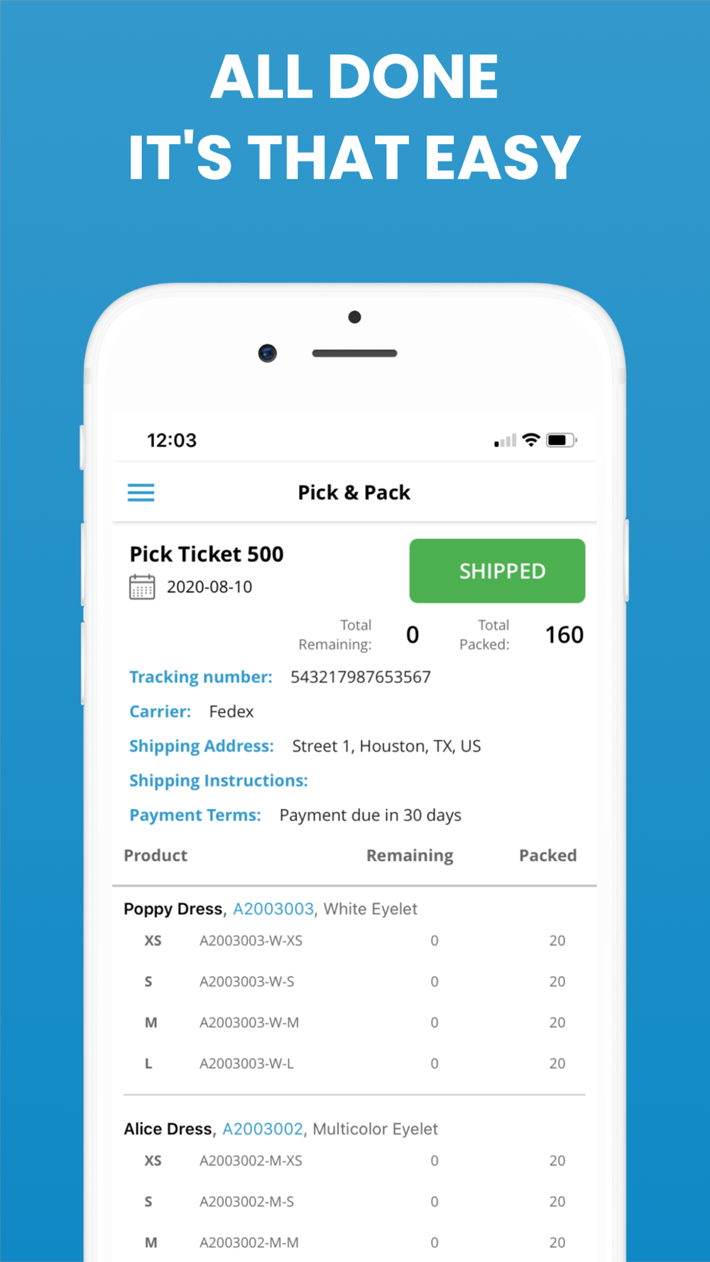 Uphance Warehouse is the phone app that works with Uphance, enabling users to quickly and conveniently pick, pack, and ship orders from their warehouse.