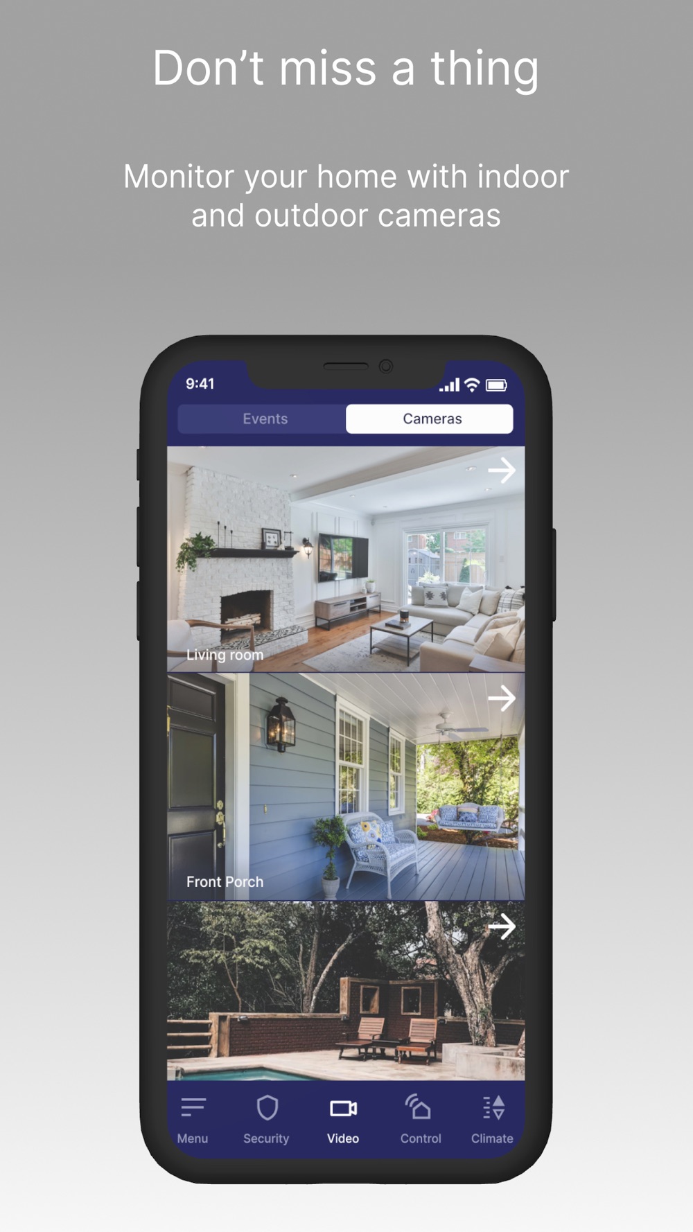Receive real-time alarm status and arm or disarm your security system remotely. Get instant alerts in the event of a security alarm, or simply to be notified when your family arrives home.