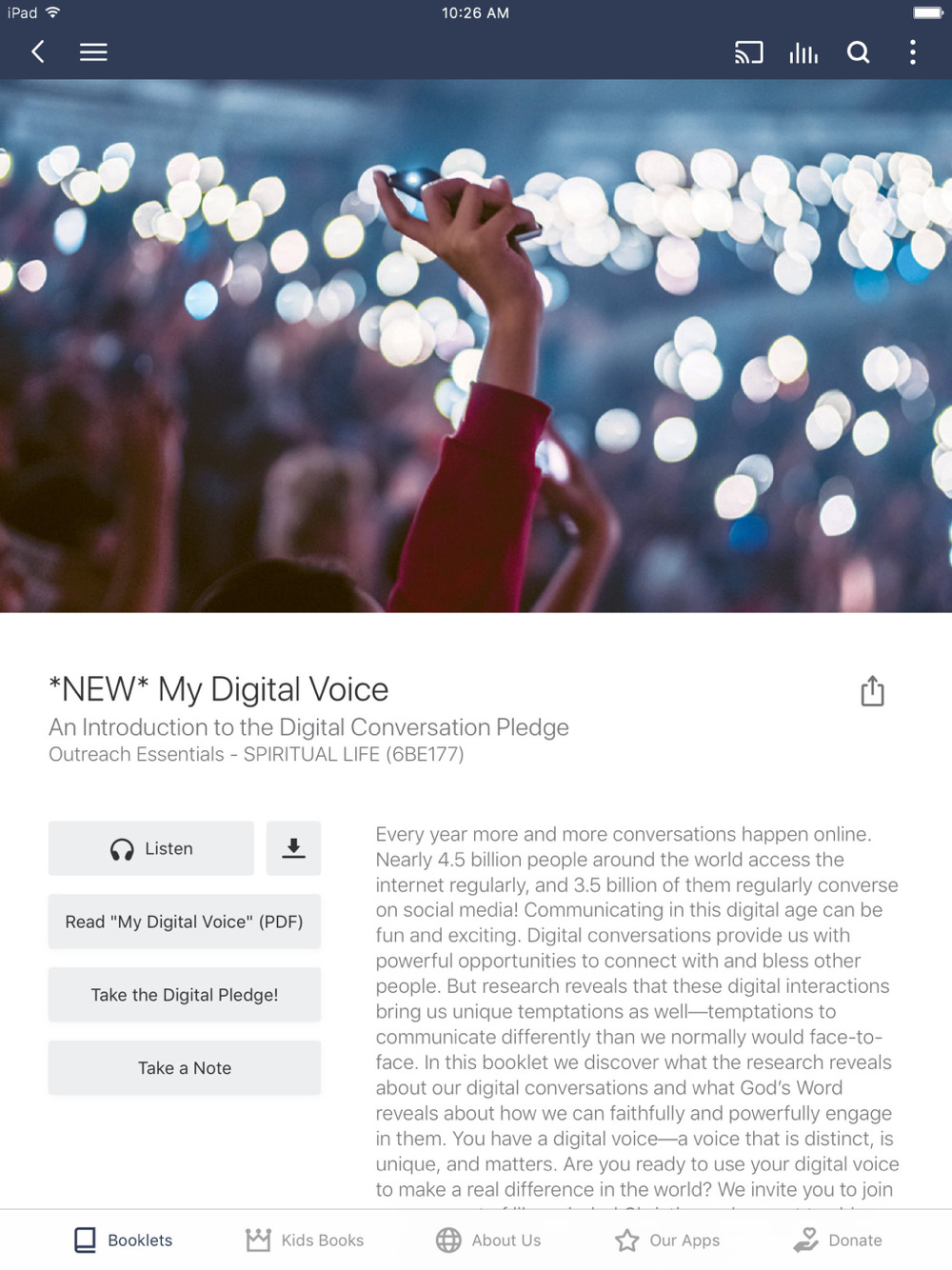 As a topical booklet ministry Project Connect, from Lutheran Hour Ministries, is an excellent evangelism resource. It gives congregations and individuals an outreach program that works and is easy to maintain. This app not only allows you to download and share these great resources, but to listen to high quality recordings as well.