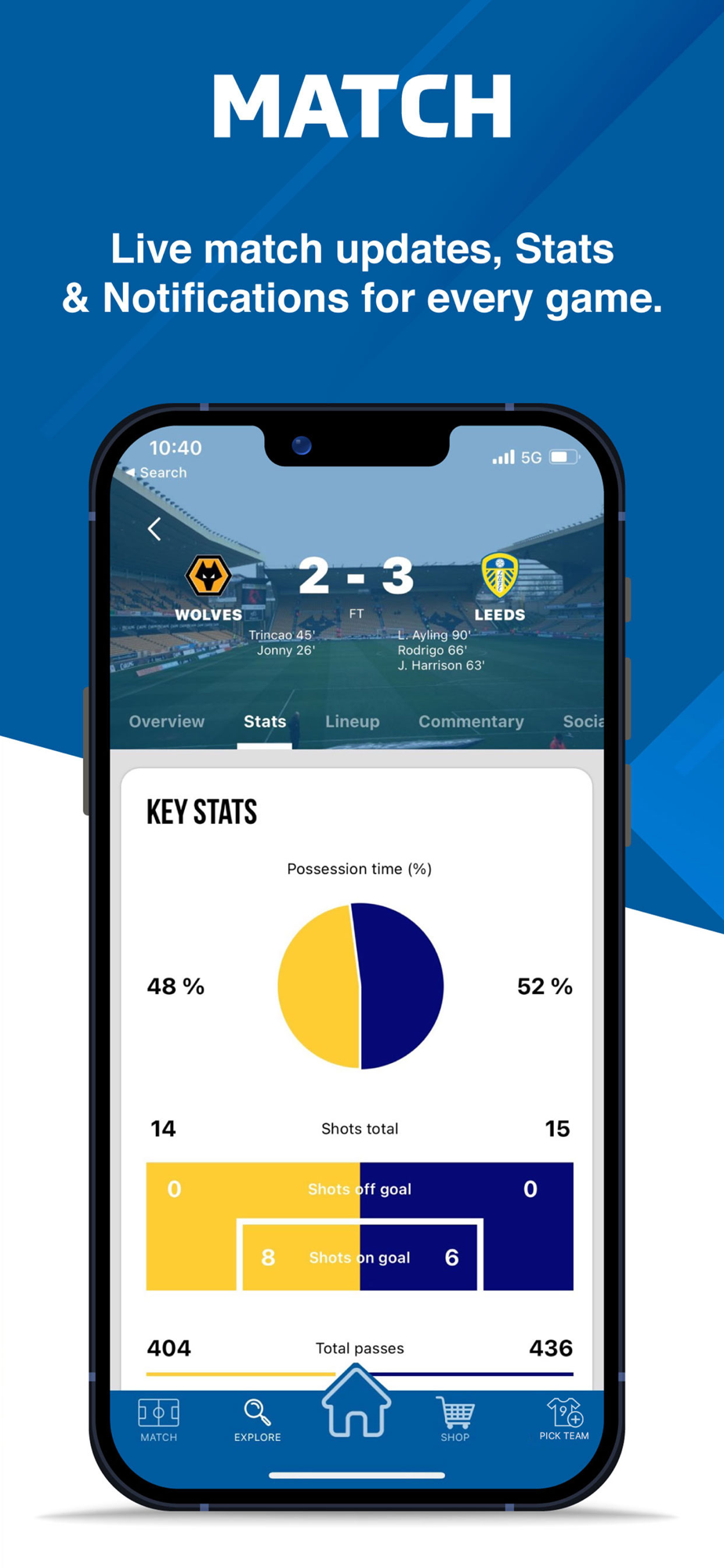The number one football app for Leeds United fans! Get your Leeds United live scores, instant goal alerts, breaking news, transfer updates, match stats, match highlights, fixtures, results, and Leeds United fan podcasts all in one place.