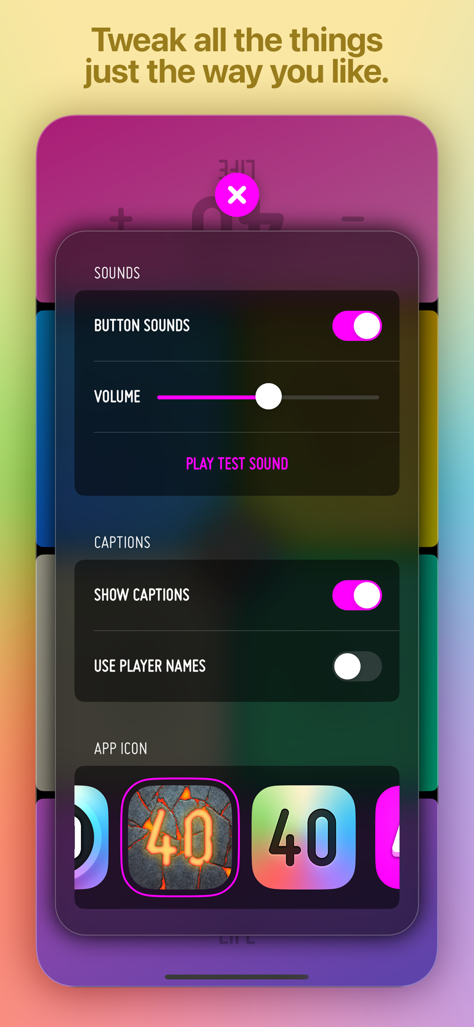 • Keep track of every player’s life total with tasty text and chonky buttons.