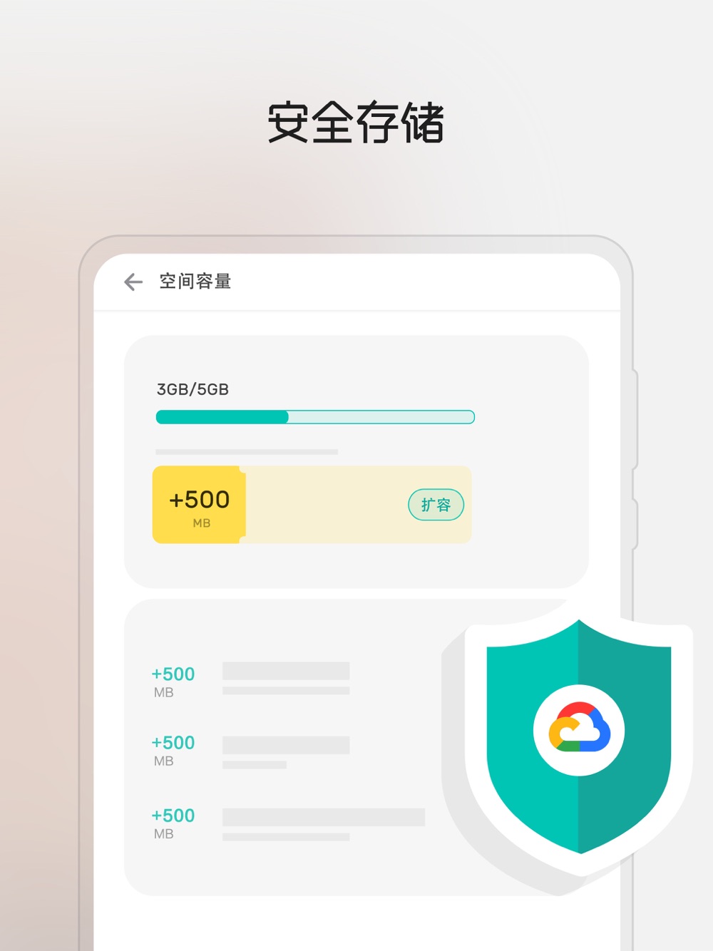 这款应用程序可保护你上传数据的安全,即使你的手机丢失或损坏,你也可以找回它们。你用得越多,你得到的存储空间就越大。我们使用谷歌和亚马逊提供的云存储来保证数据安全。