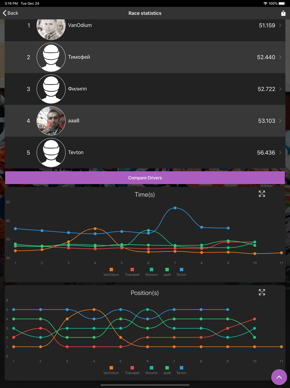 - See your position on the ranking of all drivers.