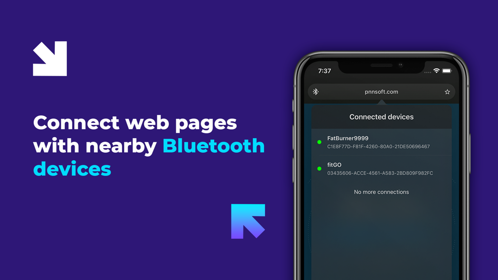 Our Web BLE Browser provides easy and fast smartphone connection directly from web pages with nearby Bluetooth devices. Now just detect and interact from appropriate web pages with numerous BLE devices such as smart home appliances, medical devices such as a heart rate monitor, glucose monitor, temperature sensors, etc.