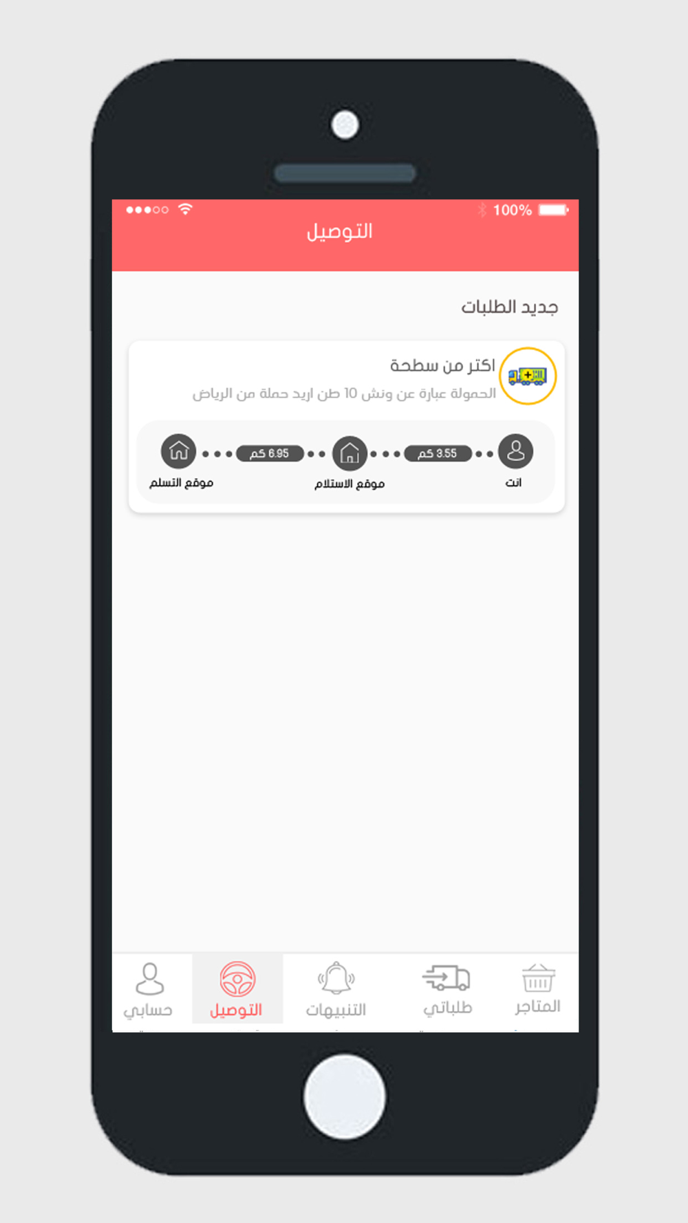 - التتبع المباشر على الخريطة لمزود الخدمة حتى يصل لإستلام الحمولة ثم توصيلها للمكان المطلوب.
