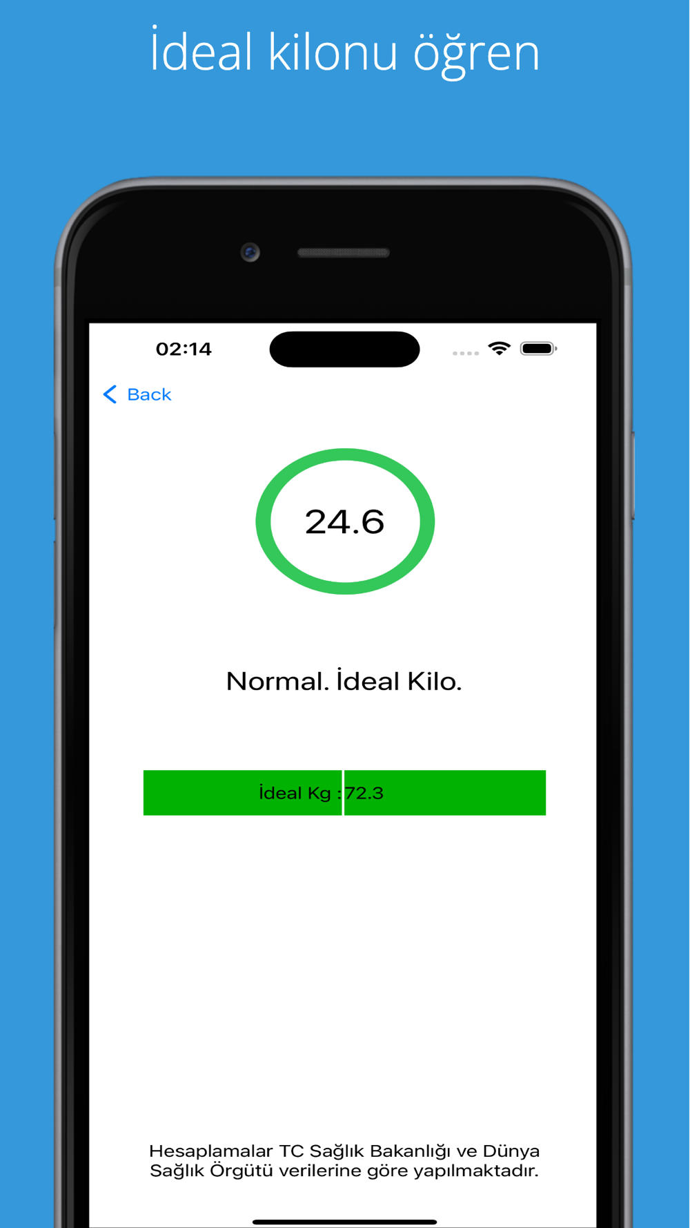 Ideal Weight Calculation is made in line with the obesity test data of the Turkish Ministry of Health and the World Health Organization. As a result of the calculation, it indicates your status (Underweight, Normal, Overweight) and your ideal weight. The ideal Body Mass Index ratios are based on 21 for women and 24 for men.