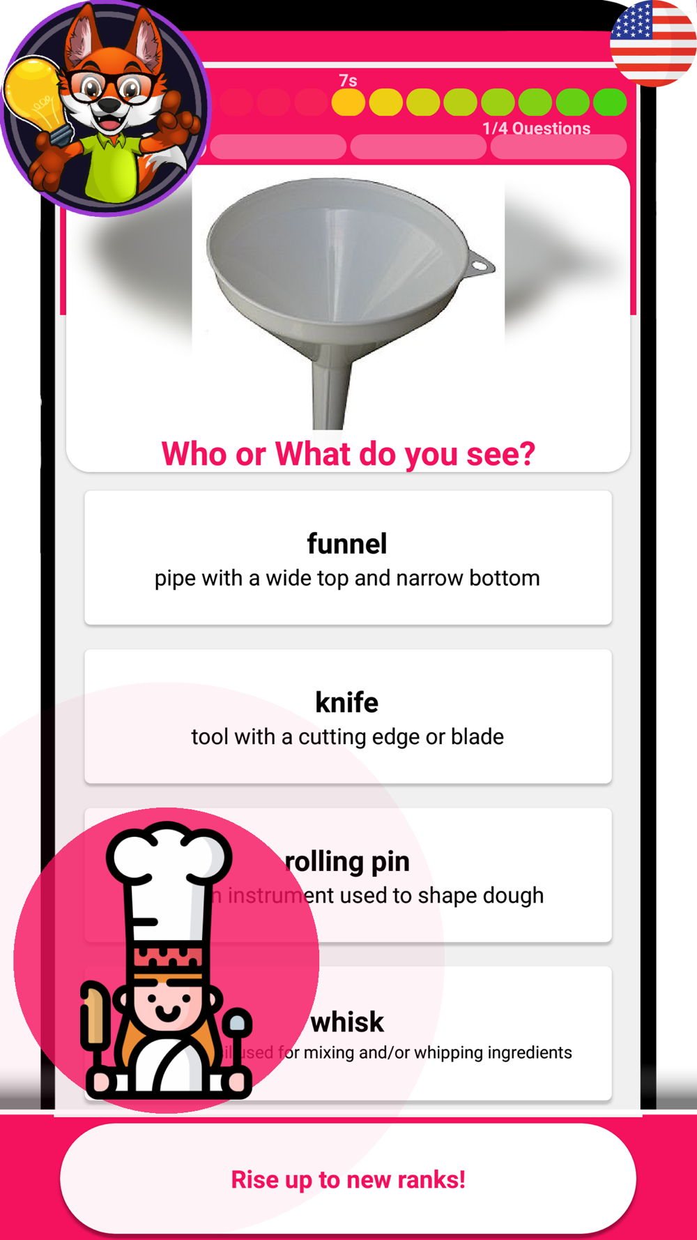 You’ll learn much about kitchen tools while answering quiz questions! Rise up to new levels!