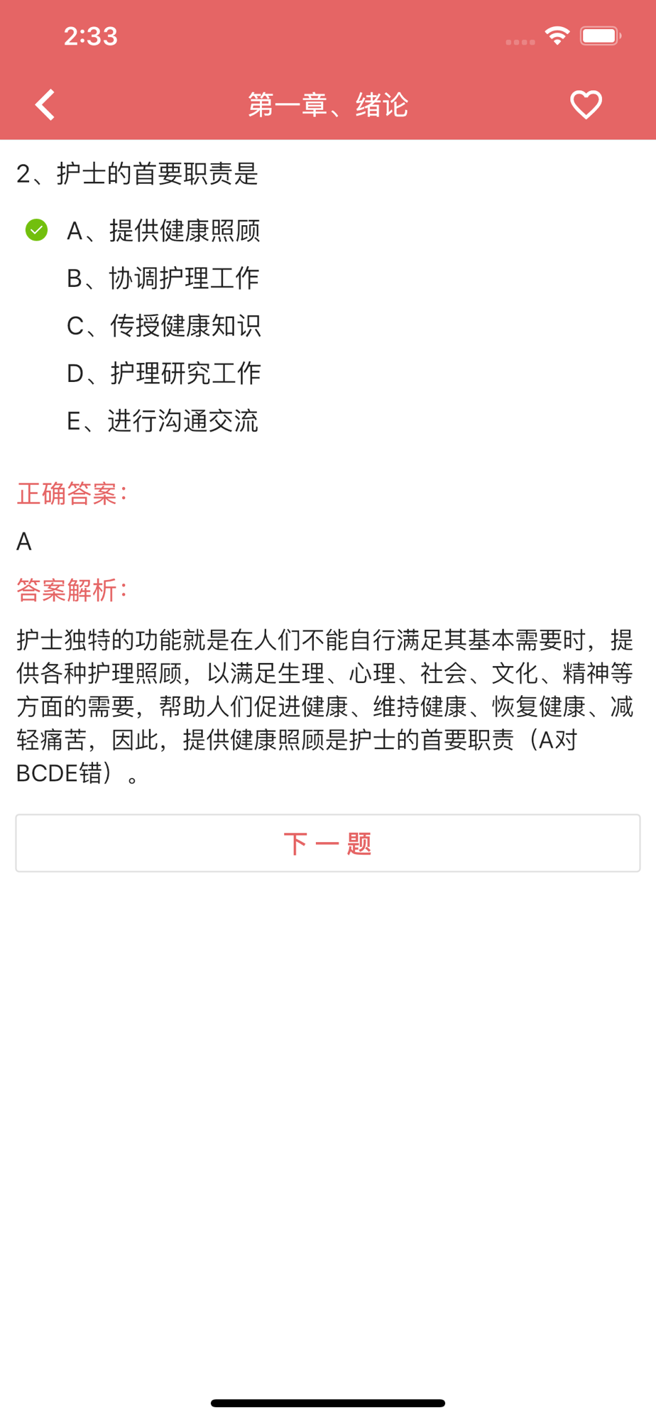 执业护士资格考试题库是一款针对全国护理专业学生考试的应用。本应用不仅包涵历年真题与模拟题,而且对每个选项都进行了详细的解析说明,并且将考点还原到教材。