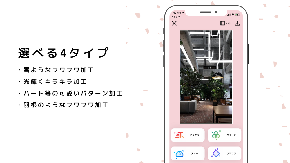・ハートなどの可愛いマークのパターン加工フィルター
