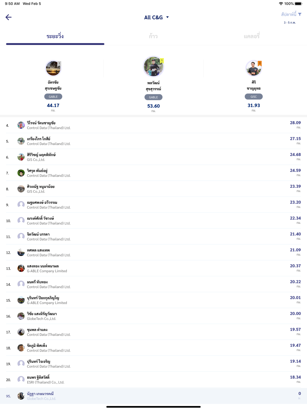 • Show Race Result, Distance, Steps, and Calories by leaderboard for top 100 data accumulated.