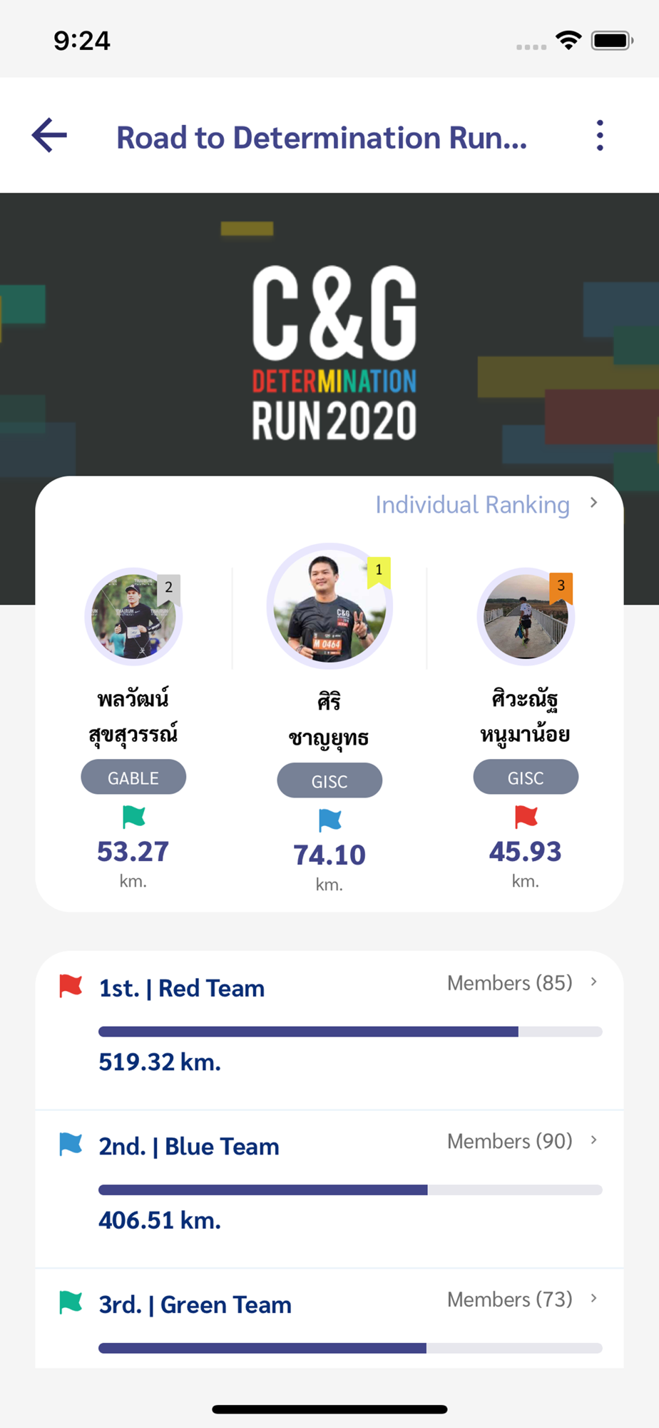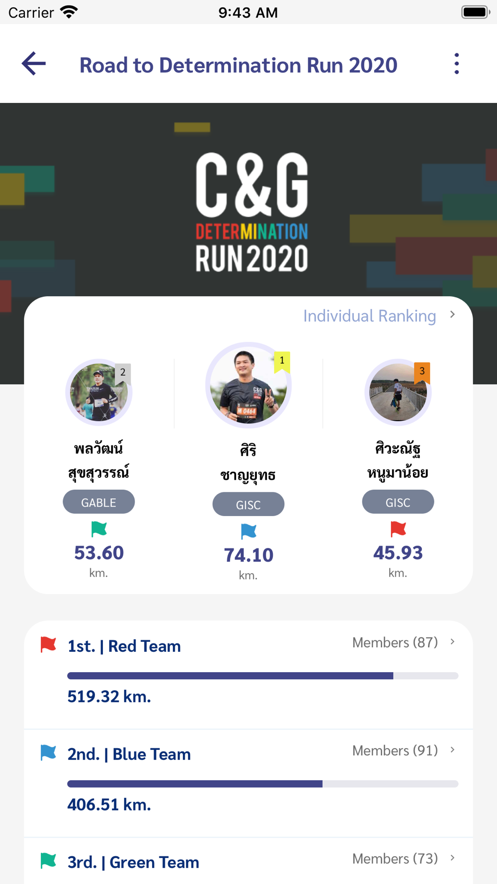 • Show challenge Detail, status, history, and ranking by overall and separate by team.