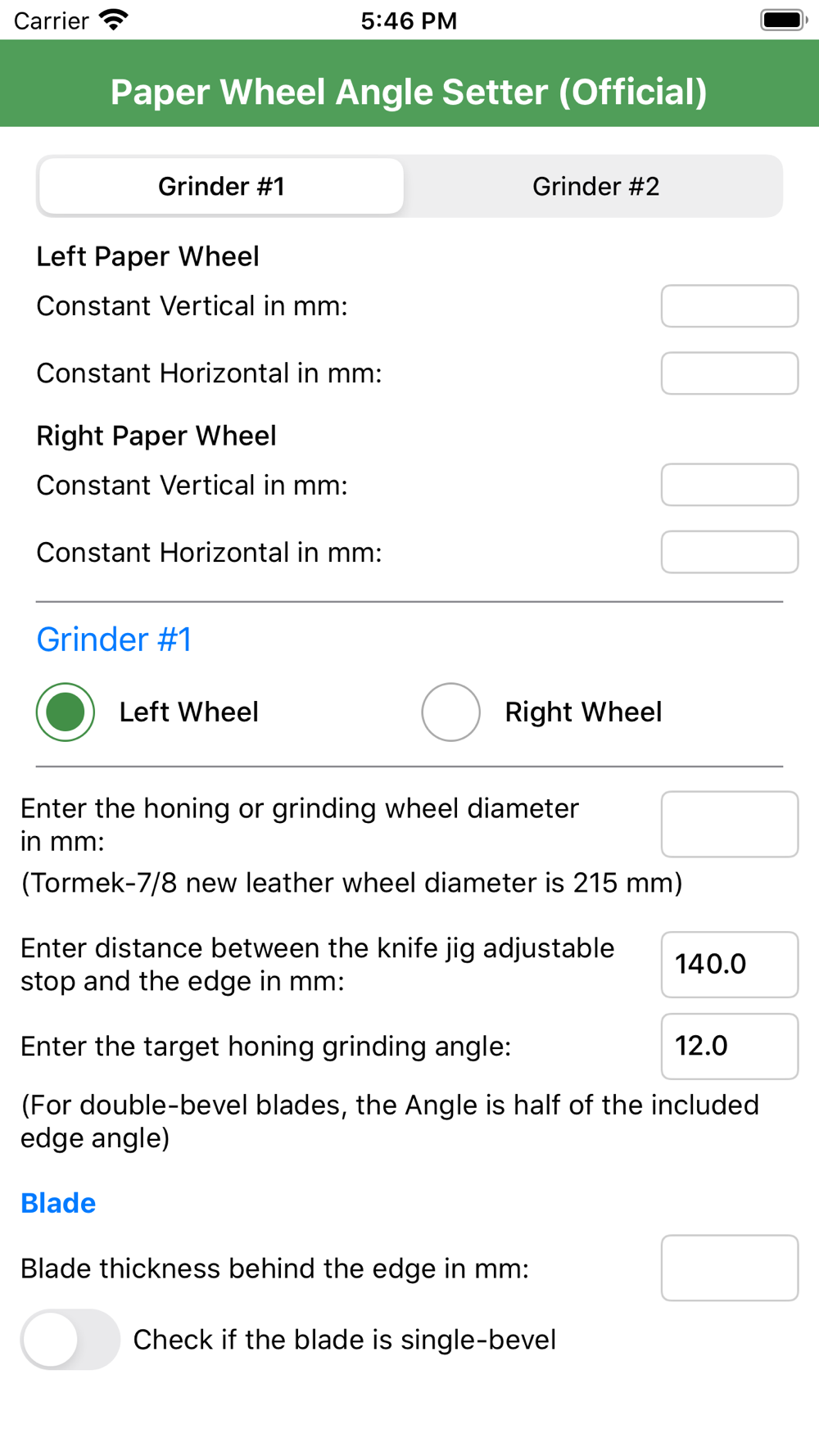 This software is to set grinding and honing angle on paper and felt wheels run on a grinder/buffer.