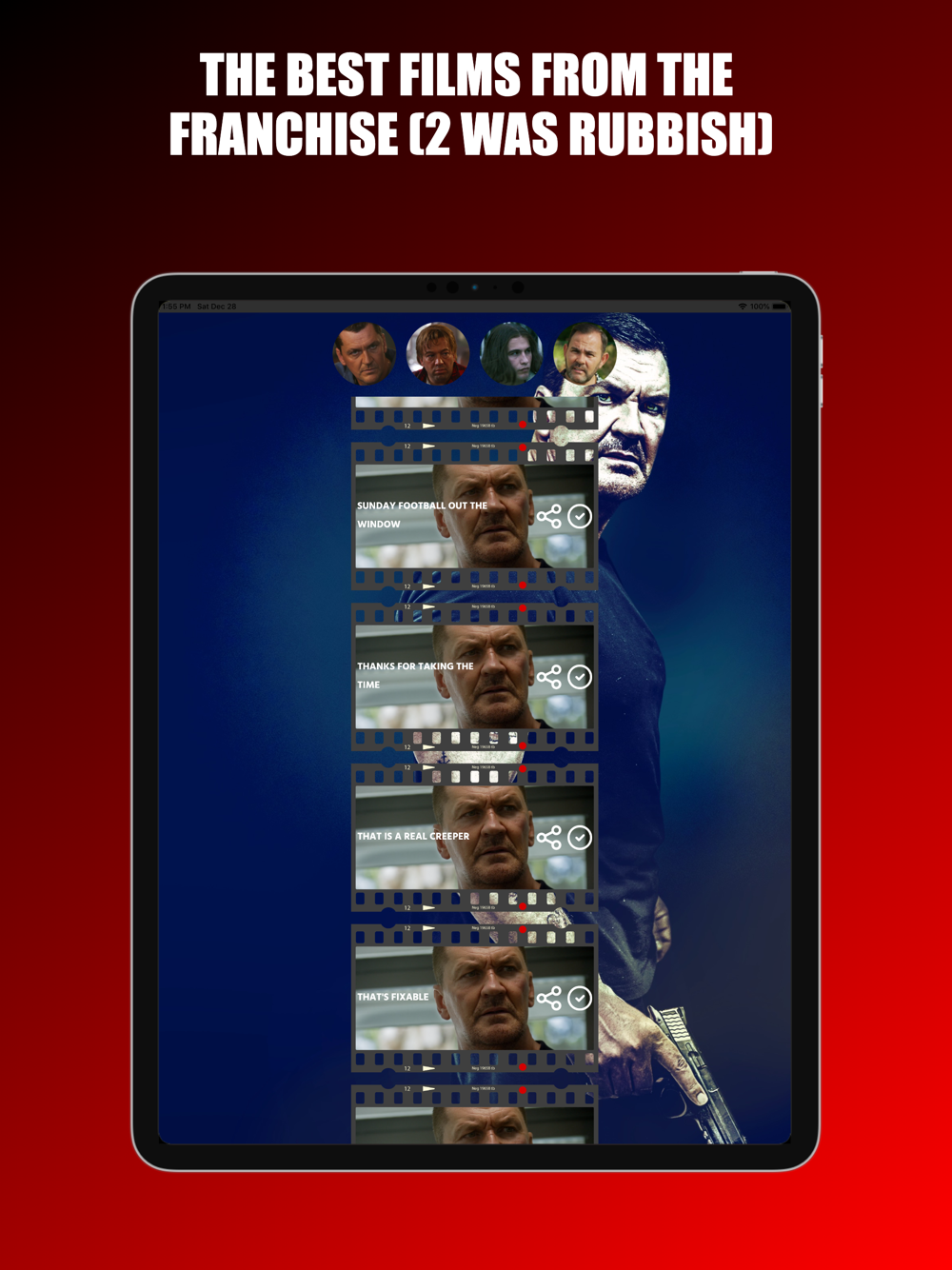 Over 800 dialog and audio clips from the Rise of the Footsoldier movie franchise. Play them to your friends and send them as mp3 files via your favourite messaging apps by tapping on the share icon next to the clip.