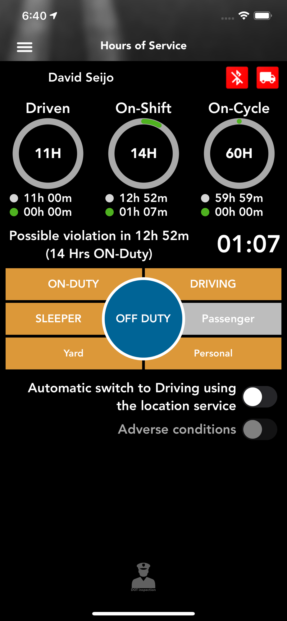-When the vehicle is stationary for 5 minutes or more, the mobile device will default to on-duty not driving and the driver must enter the proper status