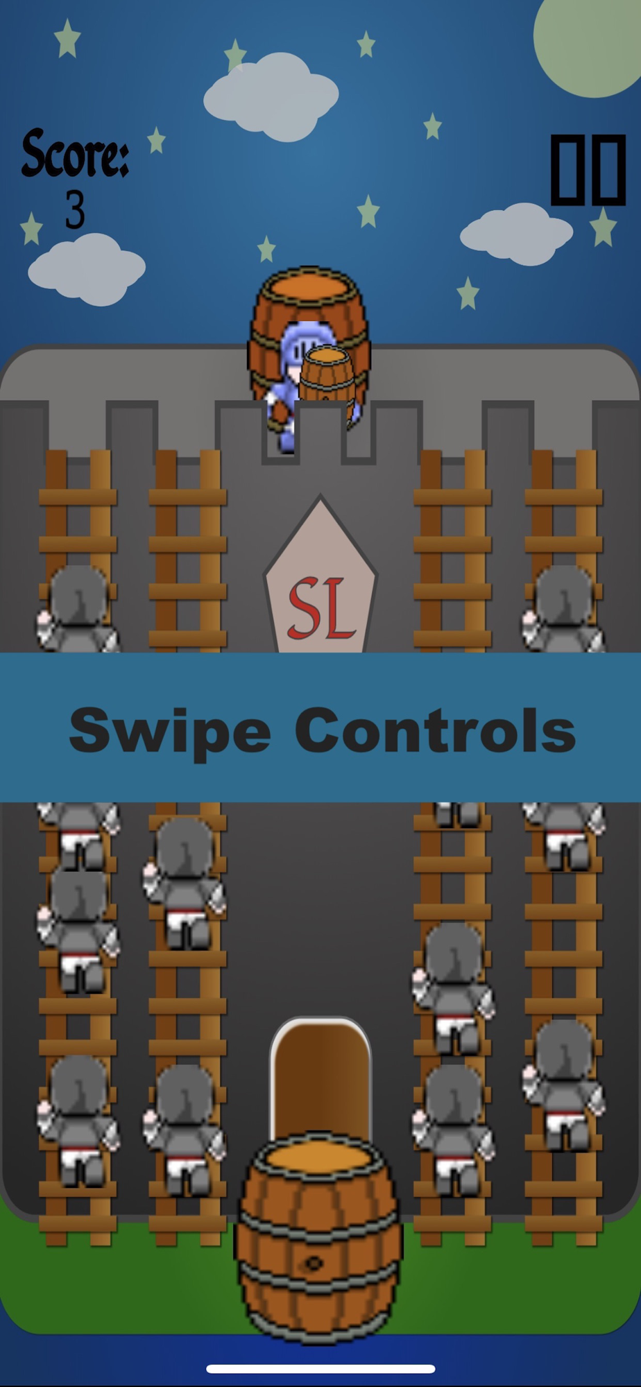 Slippery Ladder is all about defending your castle. It’s you against an army of invaders and the only tool at your disposal is a barrel of slippery oil.