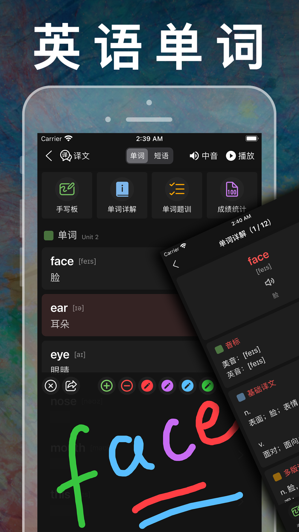 词语测验:记录学习单词短语,图标统计,让进步有个见证!