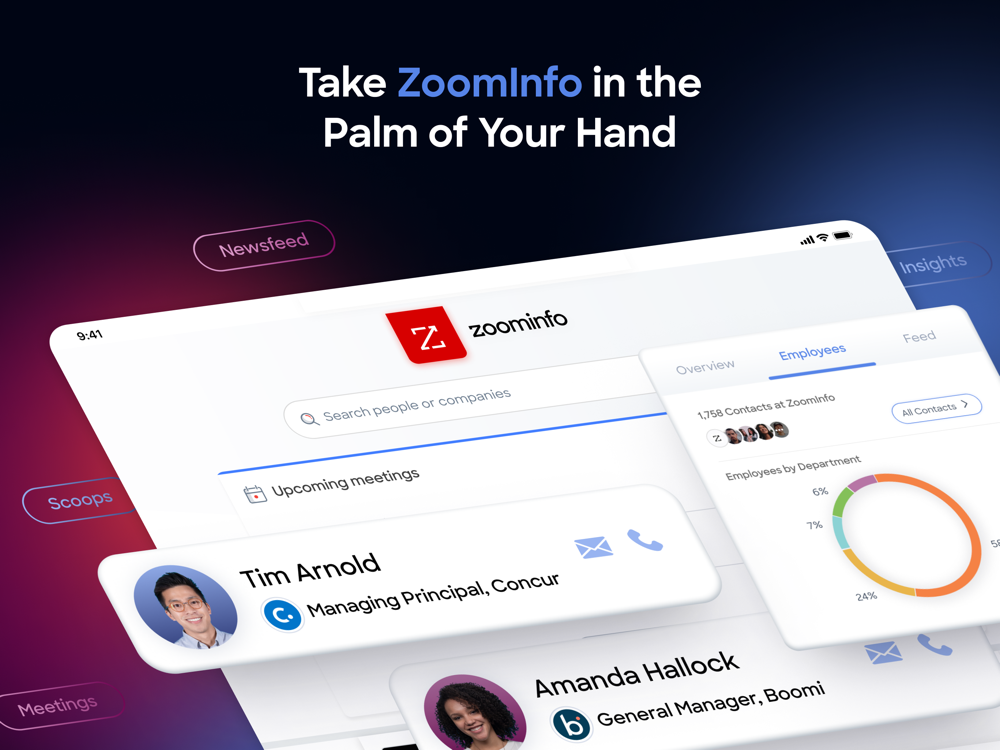 “The ZoomInfo Mobile App helps me act quickly on open opportunities. If a deal needs support, I can open the app to learn more about the company and scroll through the latest Scoops, then pull up the profile of the CEO or CIO and call them directly from the app. ZoomInfo helps me make that connection right then and there.”
