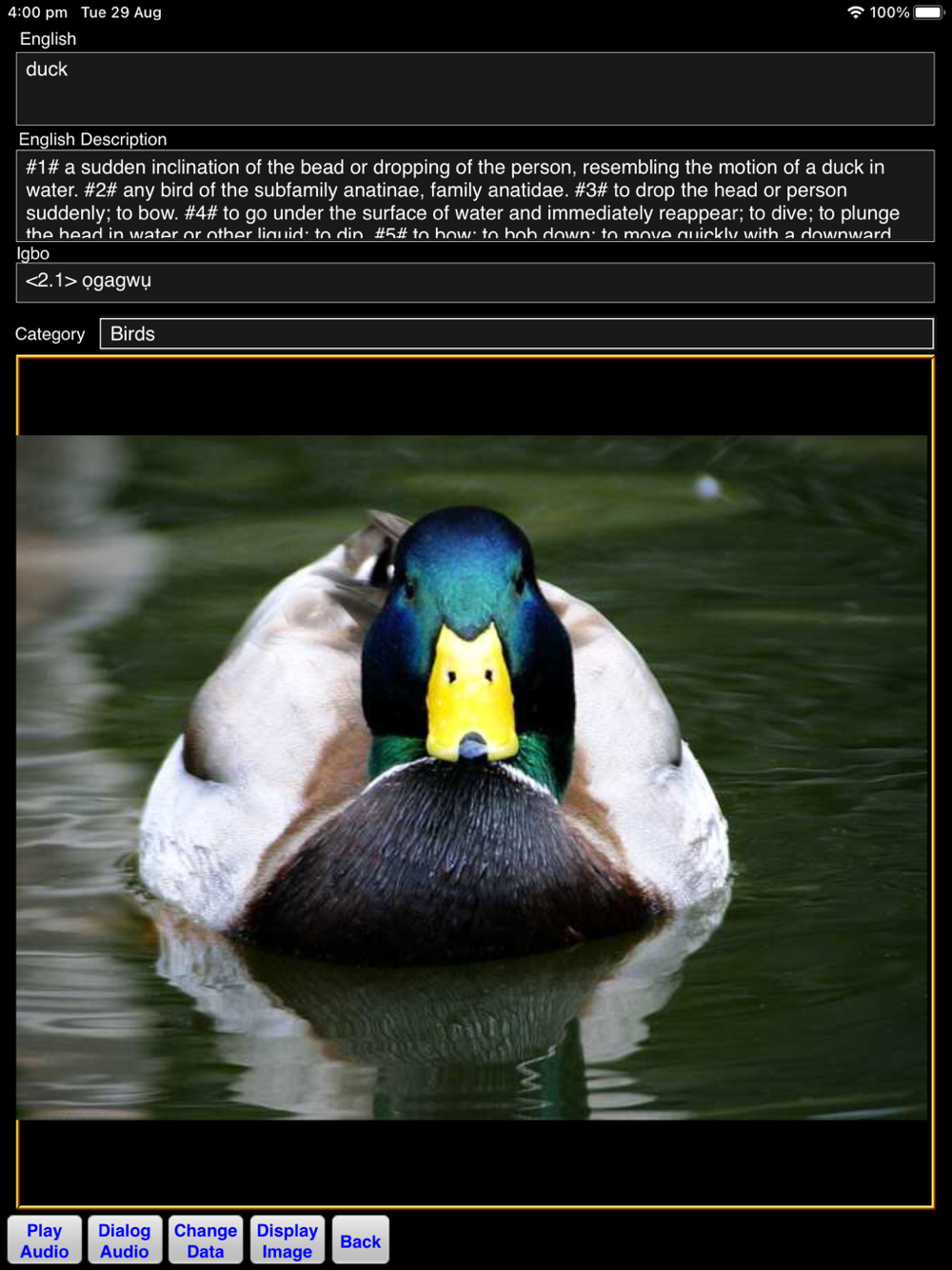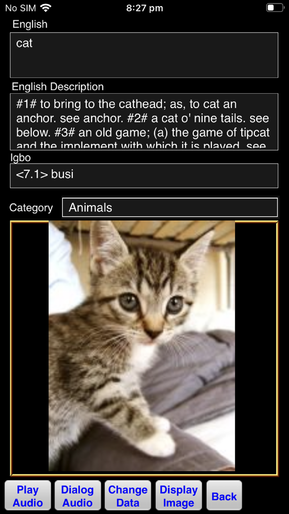 Dialog audio data helps to elaborate on the translated Igbo data and may be used to teach the user what to expect in reply to what they are saying to local speakers of the language.