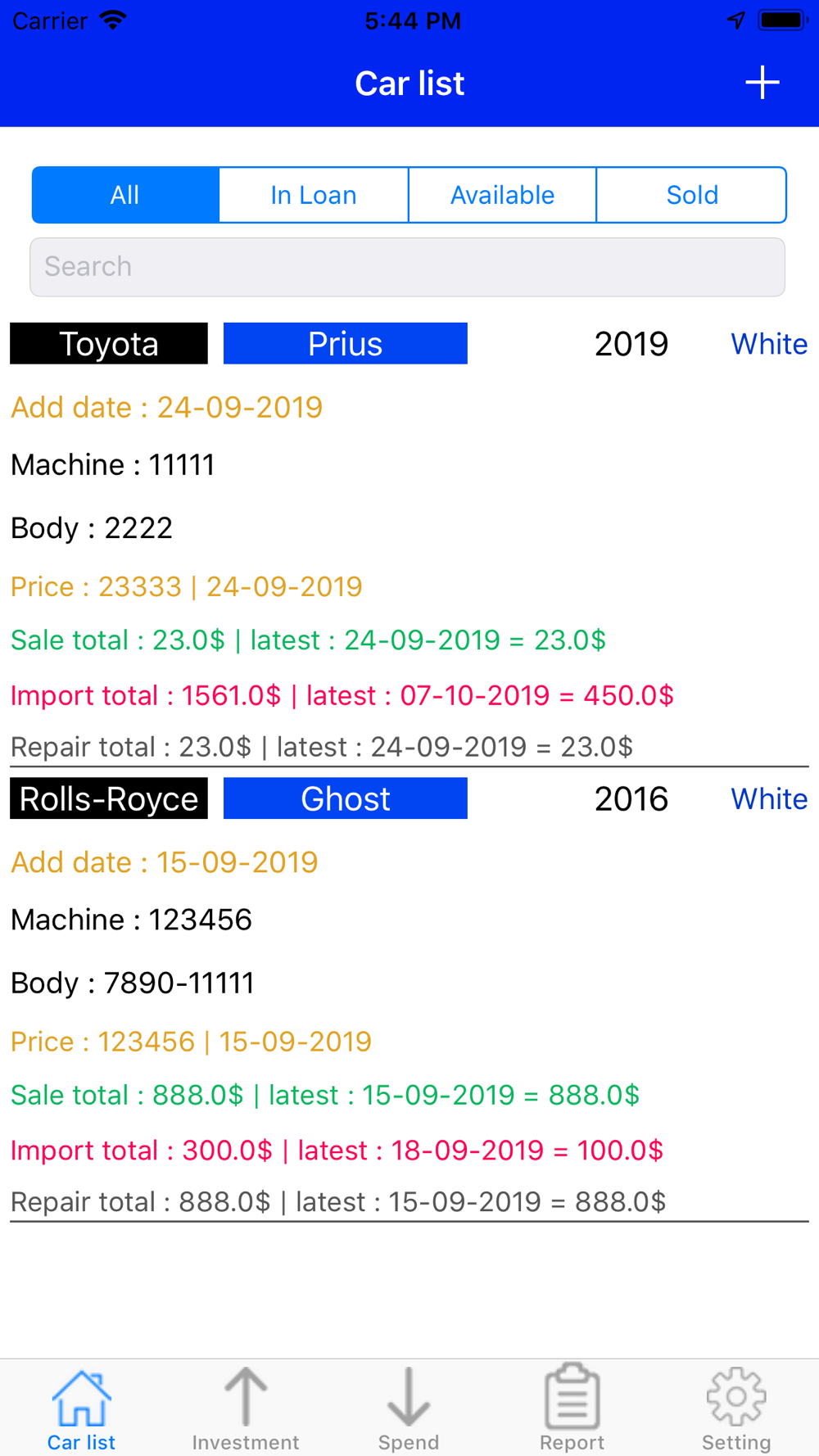 This application provide user a tool to manage their report in car garage such as new car, car in loan, sold car ... and investment on garage rental fee, staff salary, electricity fee, water supply fee in Cambodia.