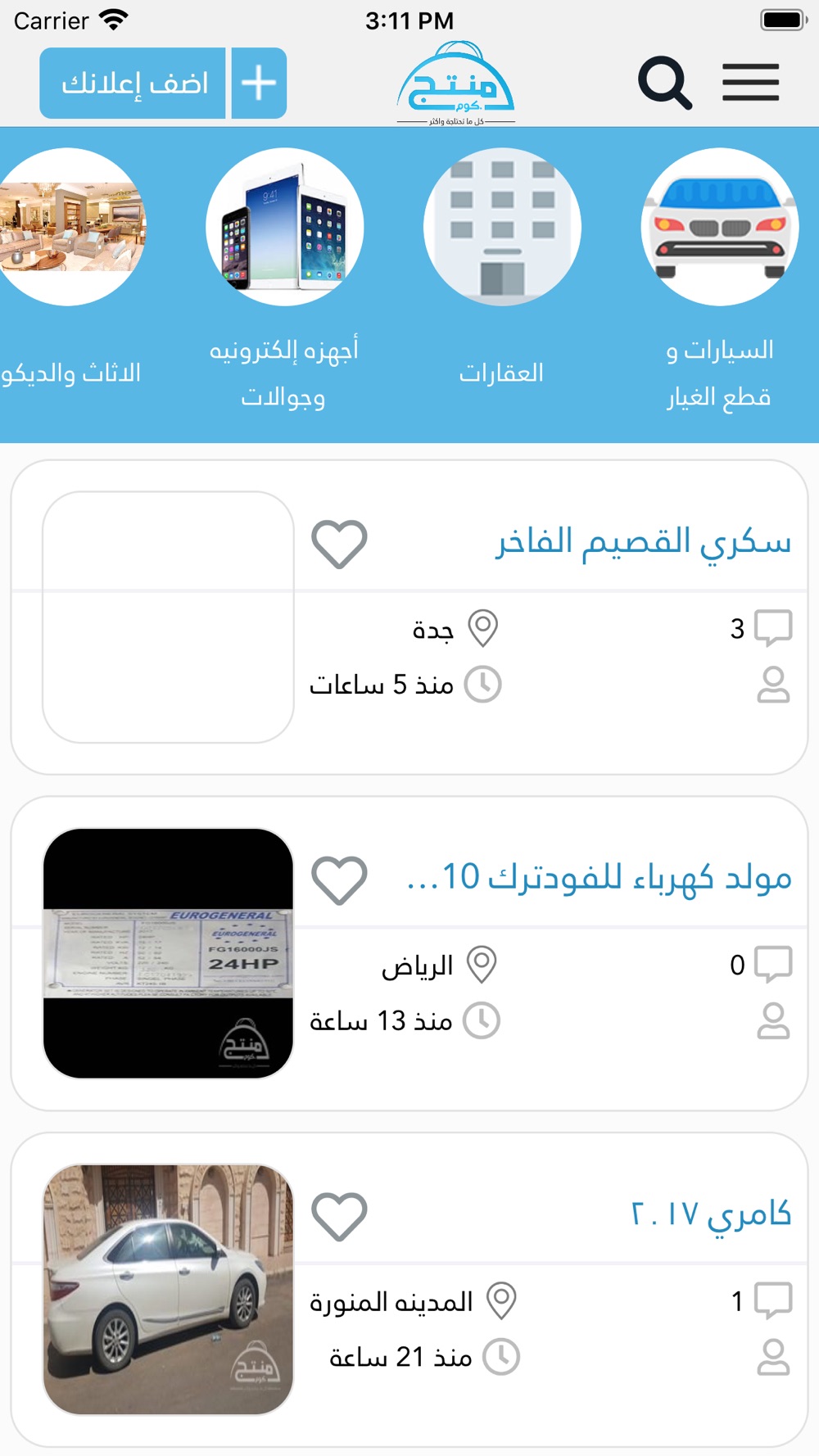 التطبيق يعرض الكثير من الأقسام مثل: السيارات وقطع الغيار، العقارات والأملاك، الأجهزة الالكترونية