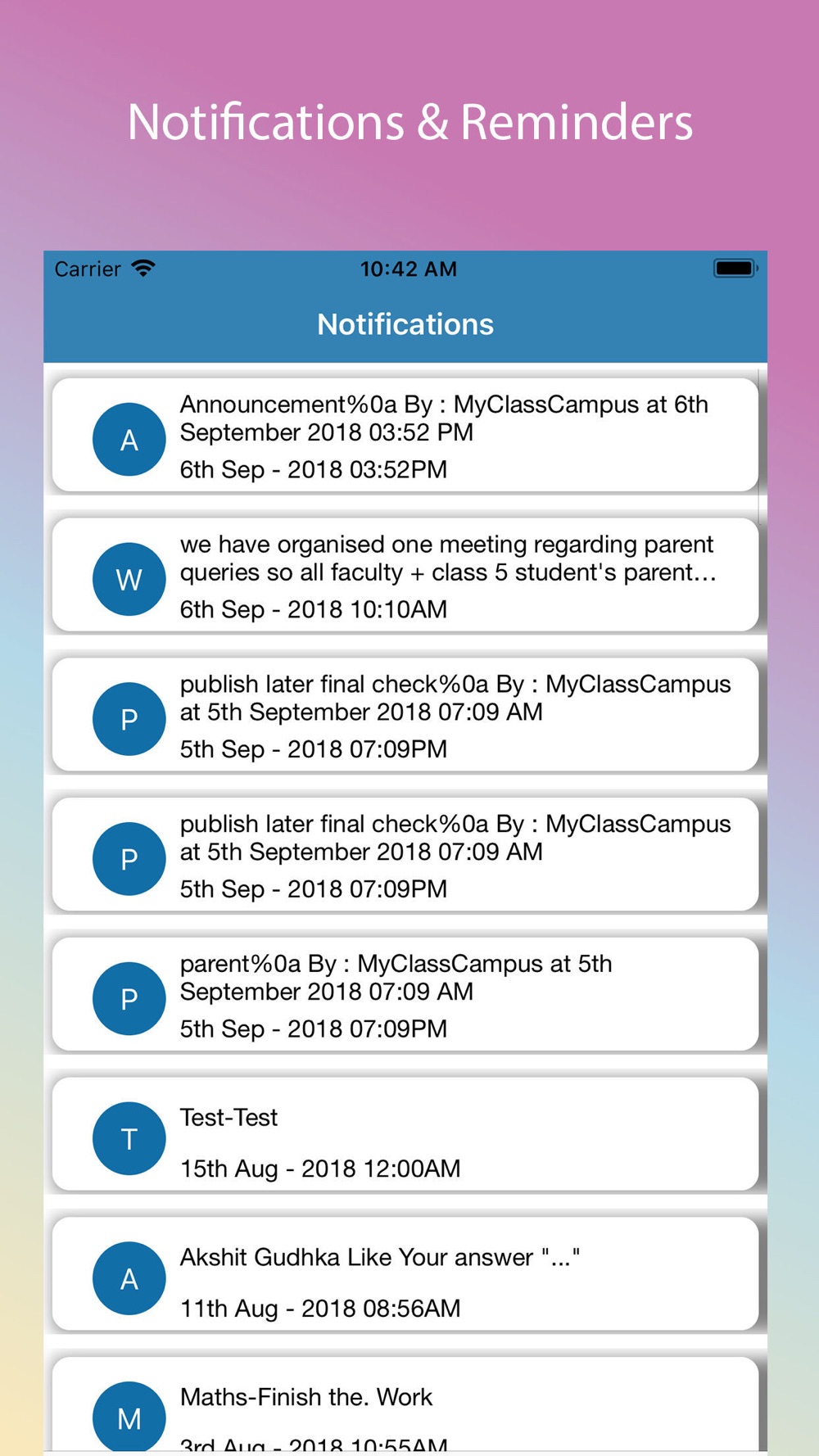 A Pool between Student, Parent, Teacher & Admin :Online tests, spot results, Calendar, Live notice board, discussion and many more..